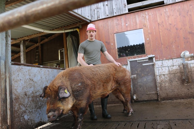 „Klar, die Verantwortung ist gross“, gibt Florian zu, „und am Anfang war ich schon ein wenig unsicher, ob ich alles richtig gemacht habe.“ Das hat sich gelegt, von Unsicherheit spürt man im Gespräch wenig. Obwohl Florian nicht in einem Schweinezuchtbetrieb gross geworden ist und nur in der Lehre mit Zuchtsauen gearbeitet hat, hat er sich bereits viel Erfahrungswissen angeeignet. Dass er eine gute Beziehung zu seinen Tieren hat, merkt man sofort.