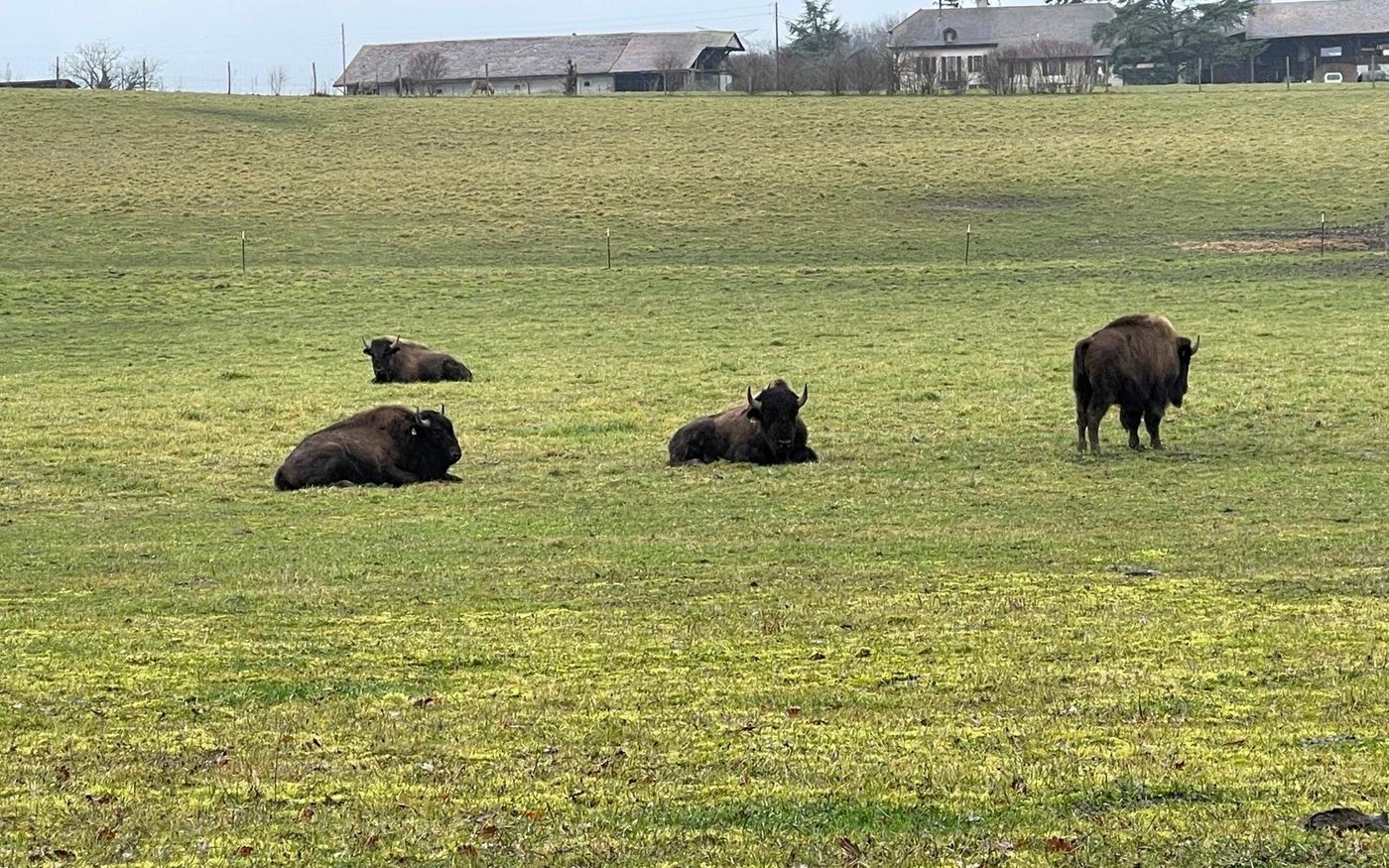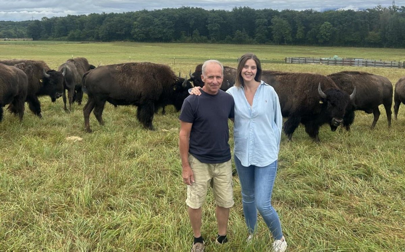 Die Bisonzucht der Familie Girardet wurde 1990 von Kims Vater, Laurent Girardet, gegründet. Er war fasziniert von Nordamerika, seinen weiten Landschaften und der Tierwelt. In der Überzeugung, dass sich Bisons auch an die Genfer Weiden anpassen könnten, importierte er die ersten Tiere in die Schweiz. Damals hielten viele diese Idee für unrealistisch. Doch inzwischen hat sich die Nische etabliert: Rund zehn Züchter teilen sich den Markt, darunter drei mit vergleichbar grossen Herden wie die der Girardets.