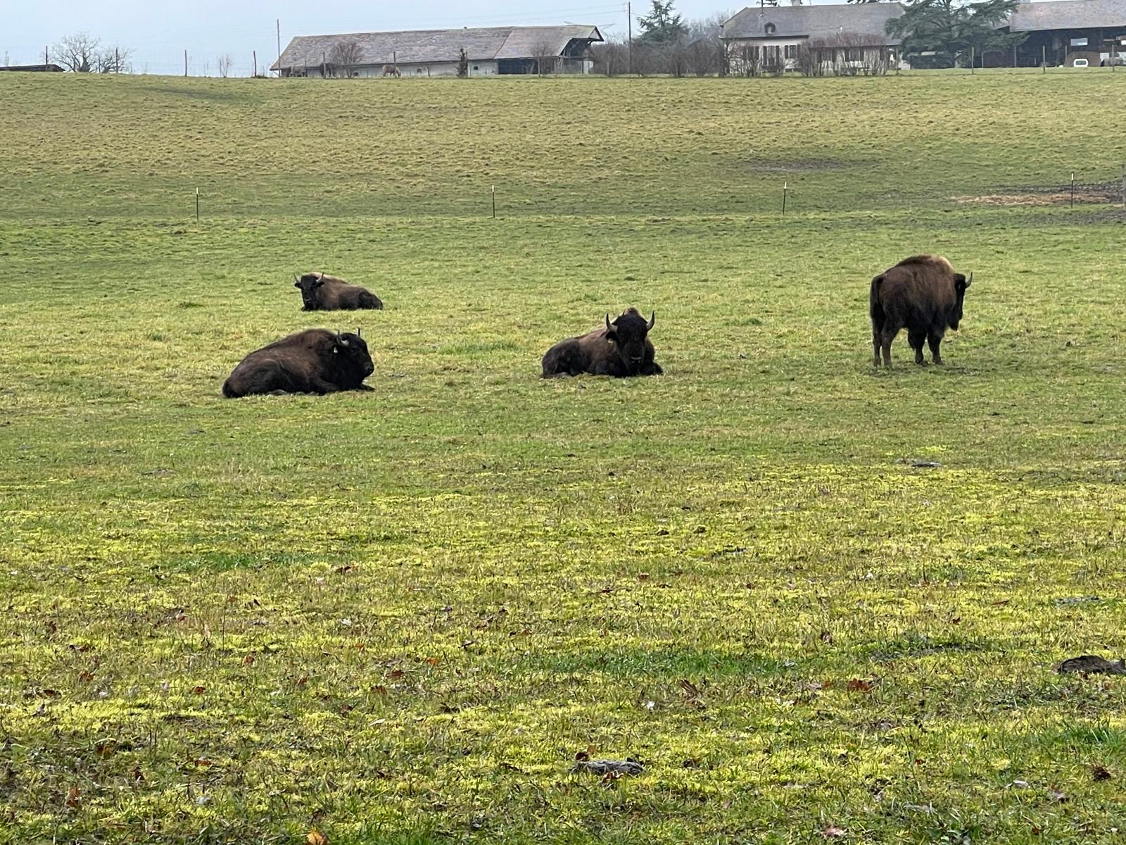Bisons brauchen zudem viel Platz. Sie können nicht in engen Gehegen gehalten oder in Ställen eingesperrt werden, sondern bewegen sich am liebsten in Herden auf grossen Weiden. Da sie frisches Gras bevorzugen, wird das Land in Sektoren unterteilt, um eine nachhaltige Beweidung sicherzustellen. So bleibt der Boden fruchtbar, die Ausbreitung von Parasiten wird eingedämmt und die Weiden werden geschont.