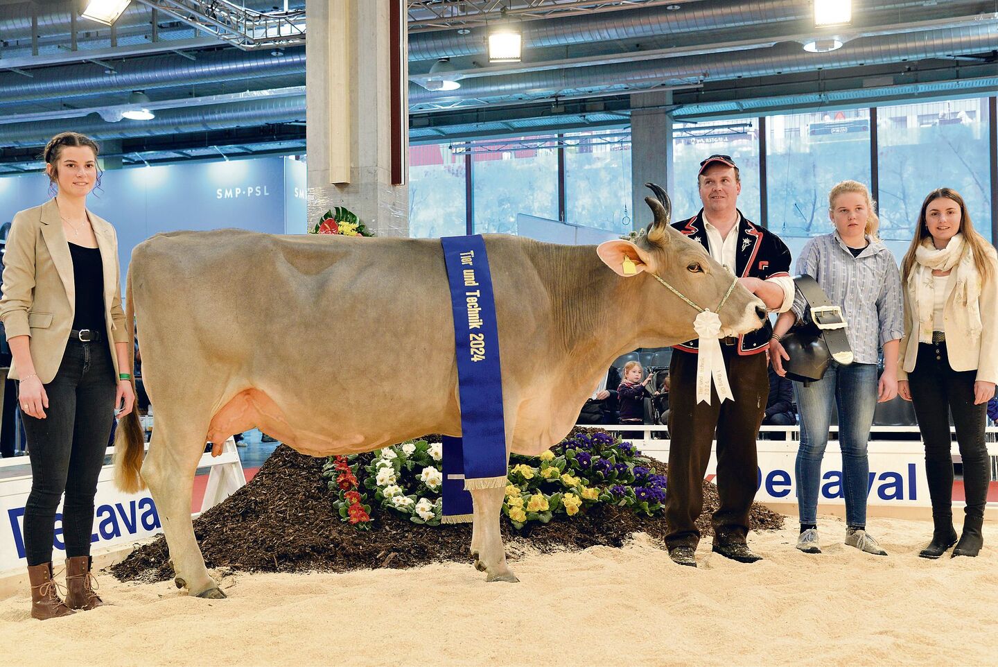 Franzen BS Salomon Sina kann schon einige Schauerfolge aufweisen. An der Walliser Kantonalschau 2019 wurde sie, damals noch im Besitz ihrer Züchter Marcel und Renato Franzen aus Betten VS, Miss Juniorin und Schöneuter-Siegerin. Im vergangenen Herbst setzte sich die bald zehnjährige Braunviehkuh, mittlerweile im Besitz von Franz und Pascal Felder und Koni Pfulg, Marbach LU, an der prestigeträchtigen Entlebucher…