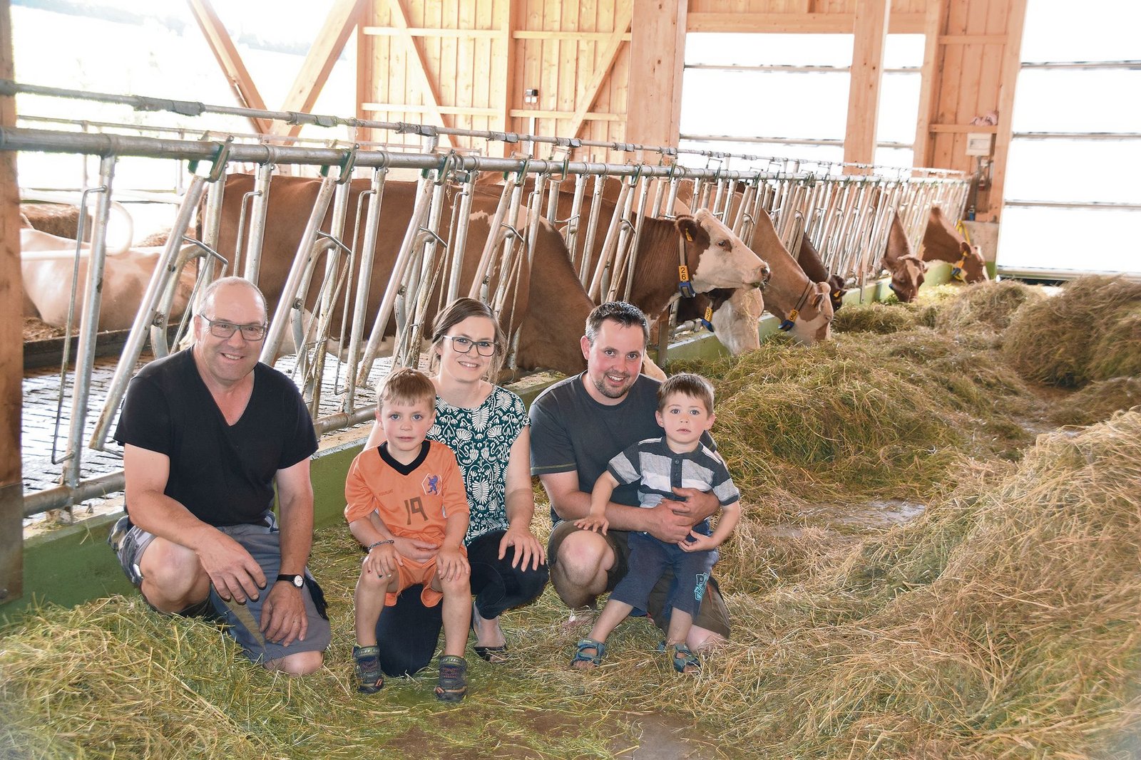 Das heisst, die Familie Herren hat sozusagen ihre Kühe im Stall von Zahnds eingemietet. «Wir sind ein super Team», sagen alle anerkennend. Neben der Tierhaltung werde auch der Futterbau zusammen bewirtschaftet, der Ackerbau sei getrennt. «Zusammen können wir die Arbeit perfekt aufteilen», sagt der junge Betriebsleiter. Auch die Wochenenden seien genau geregelt. «Da haben wir auch ab und zu frei und müssen nicht immer gleich nach Hause rennen, wenn die Melkzeit ruft».