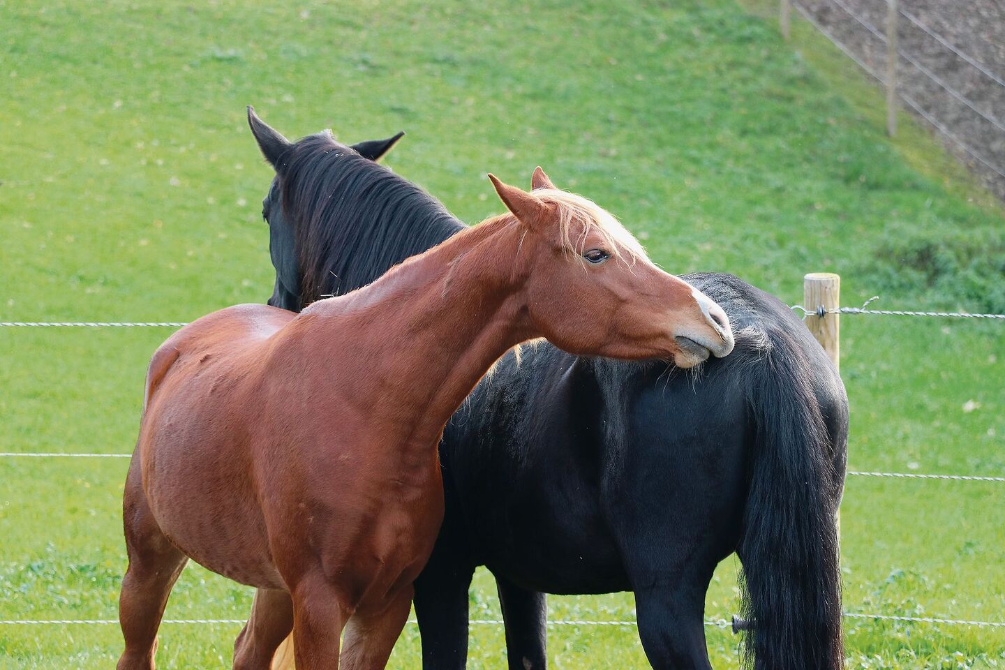 Auf dem Hof Matterand im Aargauischen Staffelbach können die 25 Pensionärinnen zwischen Auslaufboxen, einer Stuten- und einer Wallachgruppe wählen. Aber egal, wo ihr Pferd steht – es verbringt einen grossen Teil des Tages in der Gruppe, unterwegs auf einem Trail, zwischen Paddock und Weide. 15 Pferde gehen am Abend in ihre Boxen zurück. [IMG 2] Tagsüber gibt es Heu in Raufen und Heunetzen; einzeln gefüttert wird am…