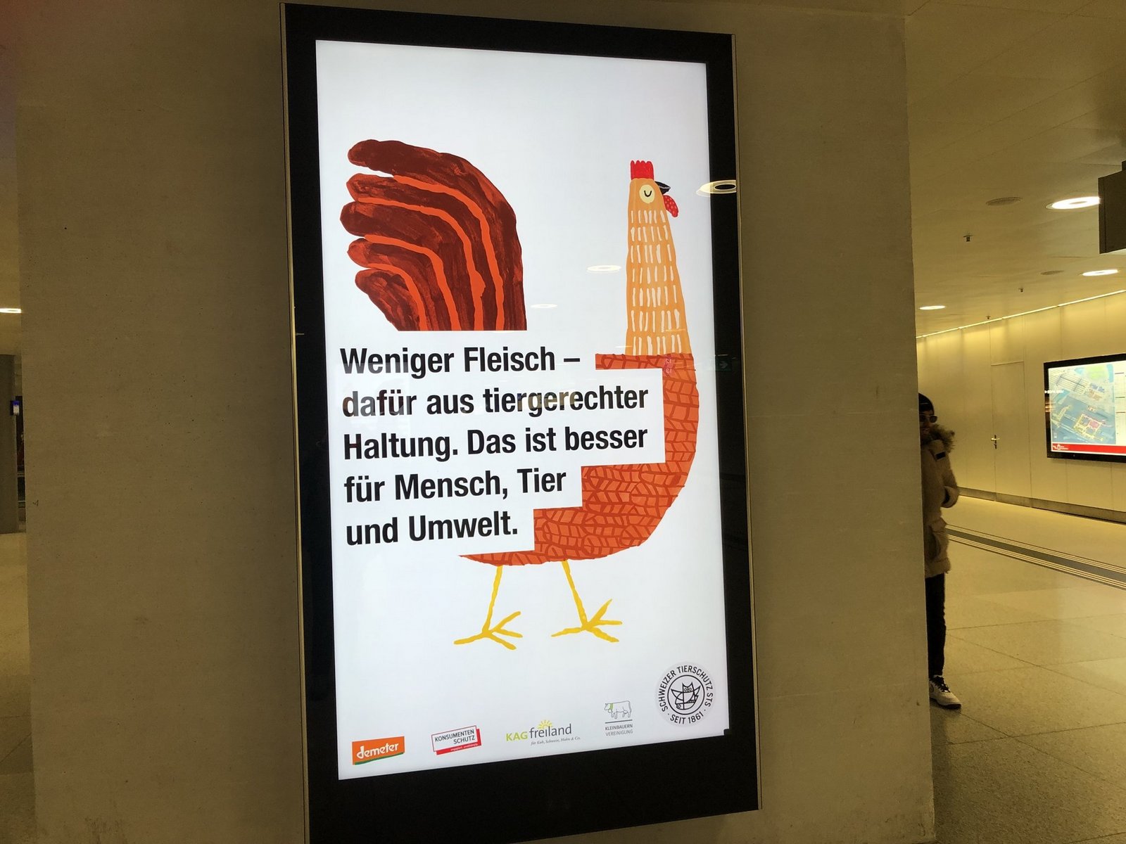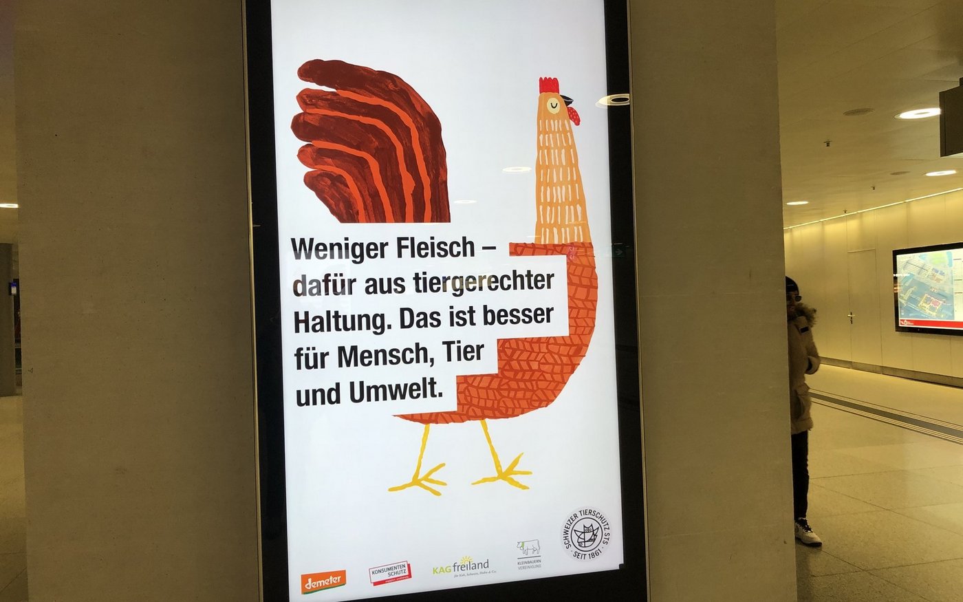 Es gehe beim Einsatz für eine nachhaltige Ernährung um mehr als die Förderung vegetarischer und veganer Produkte, schreiben der Schweizer Tierschutz STS, KAG Freiland, der Konsumentenschutz, Demeter und die Kleinbauern-Vereinigung (VKMB) in einer gemeinsamen Mitteilung. Schliesslich essen 90 Prozent der Schweizer(innen) tierische Lebensmittel und der Fleischkonsum liege bei hohen 50 kg pro Kopf, so die Argumentation. Der mit 12 Prozent kleine Anteil aus Labelproduktion soll mit einer neuen Kampagne gesteigert werden.