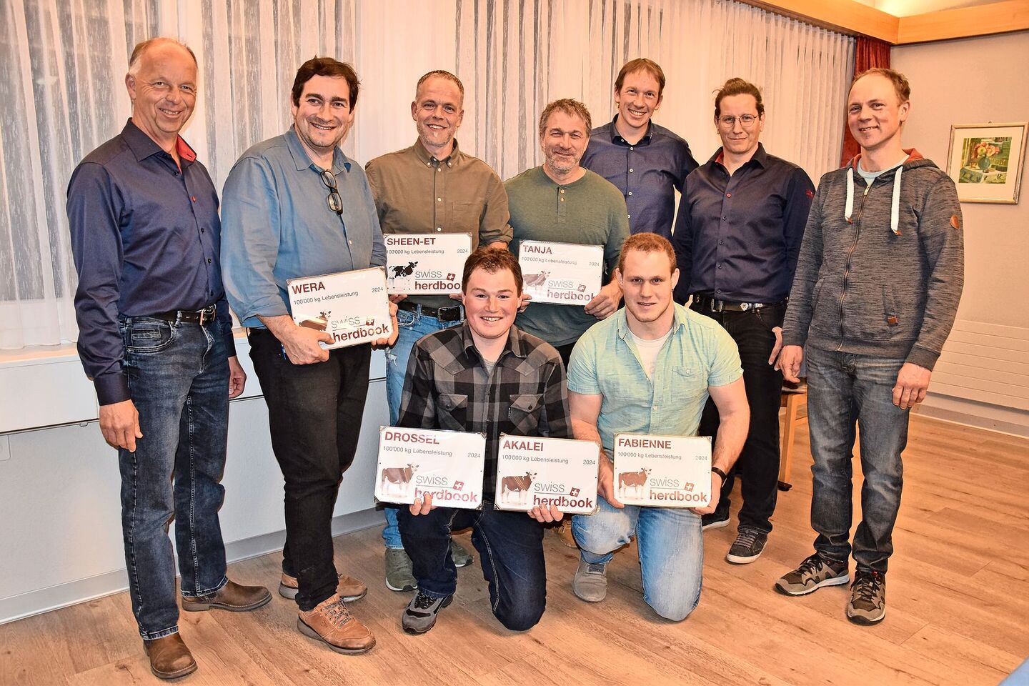 Die Freude und der Stolz der Viehzüchter waren bei den Ehrungen für die hervorragenden Milchkühe sichtbar. Es braucht viel Arbeit, Engagement und ebenso Glück, um langlebige, leistungsstarke Tiere im Stall zu haben. Auf dem Leistungsblatt waren sechs Kühe, welche die Marke der 100 000 Kilo Milchleistung erreicht haben. Sie wurden von Adrian Weber und Nicolas Berger geehrt. Als hervorragende Tiere wurden eine Holsteinkuh und fünf Swiss-Fleckvieh-Kühe von fünf Züchtern mit Plaketten ausgezeichnet (siehe Kasten). 31 Kühe erreichten die Milchleistung von 80 000 Kilo und mehr, 20 davon produzieren aktuell noch Milch und sind unterwegs zur 100 000er-Leistung. Deren Besitzer durften ebenso eine Plakette und Glückwünsche entgegennehmen. Die älteste Kuh hat Jahrgang 2010, und die jüngste wurde im Januar 2016 geboren.