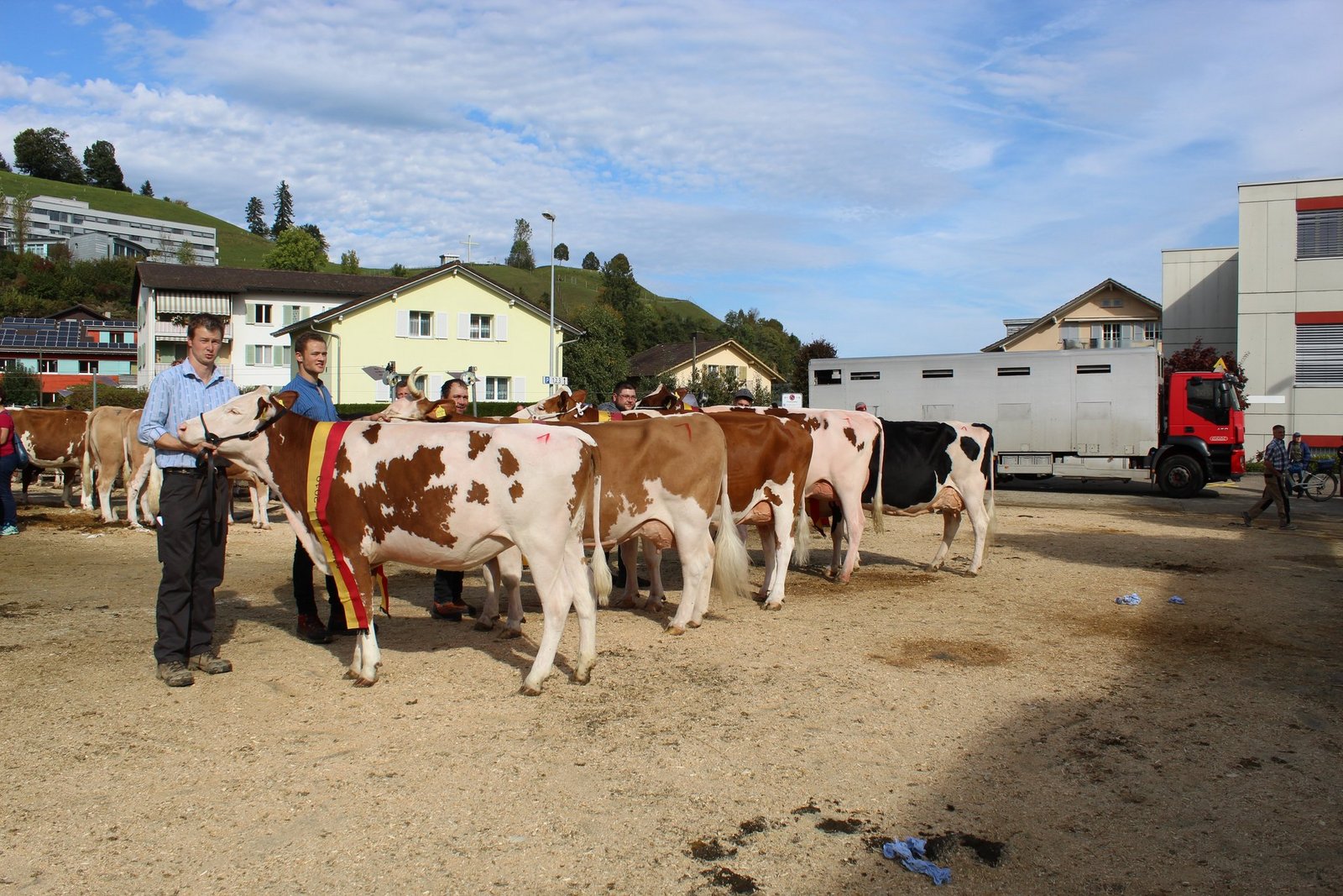 Aufgereiht von links nach rechts standen Rinder-Miss Sorson Pamela von Stefan Birrer, Luthern; Miss Simmental Fabbio Franca von Erich Christen, Hofstatt; Miss SF Samir Sabin von Leo Zwyer, Hergiswil; Junior-Miss Ladd Larina von Ueli Dahinden, Ebnet und Miss RH/HO Twix Dorothee von Martin Burkard, Willisau.