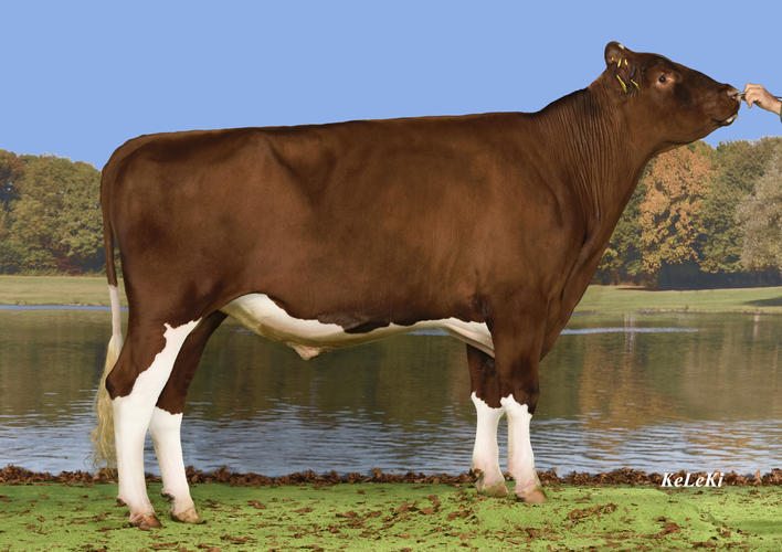 Beim Exterieur gibt es beim Swiss Fleckvieh einen neuen Spitzenreiter. Er heisst Renato Kilian aus der Zucht von Hans und Res Staub aus Eriswil BE. Kilian ist ein Sohn aus der bekannten Schaukuh Incas Haway (55 55 98) und EX-92 (Euter: EX-96). Von Kilian sind bisher 22 Töchter beurteilt was ihm einen ITP von 133 einbringt. Mit einem Euterzuchtwert von 134 lässt er hier keine Wünsche offen. Aber auch im Format (122) und im Fundament (114) ist er ein starker Vererber. Kilian wurde vor dem KB-Einsatz im Natursprung eingesetzt. Vor allem bei Daniel und Bernhard Hadorn, Schangnau BE, stehen mehrere, eindrückliche Erstlingskühe in ihrem Stall. Fast um ein Haar hätte es Kilian aber nicht in den KB-Einsatz geschafft. Nur auf Drängen des Züchters und der Mitbesitzer kam dieser Renato-Sohn doch noch zu Swissgenetics. Zum Glück: Denn jetzt können alle Betriebe von seiner Genetik profitieren.