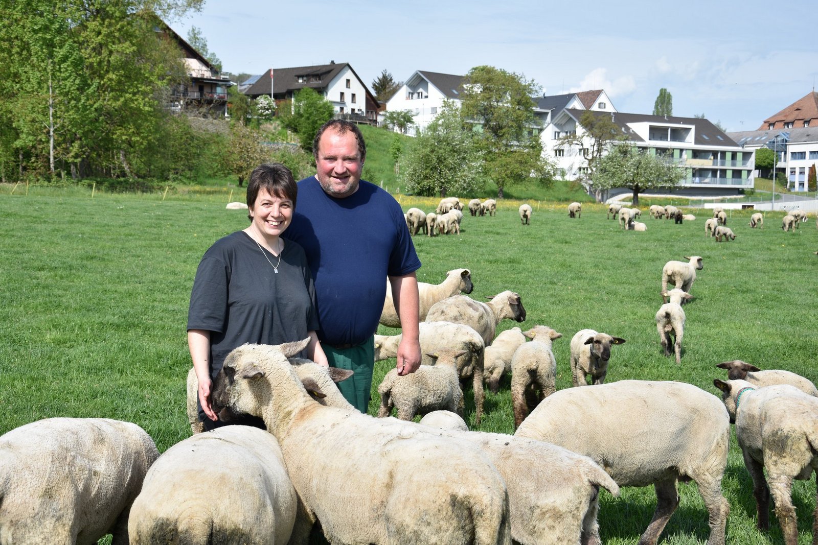 Auf einen Zuruf schart sich die ganze Herde braunköpfiger Fleischschafe um Angela Oesch. «Einen Hund brauchen wir nicht», erklärt Ruedi Brunner, während seine Partnerin in die Hocke geht um im wolligen Meer beinahe verschwindet. Der Vierbeiner würde die Schafe nur unruhig machen, ist Brunner überzeugt. [IMG 2] Rassentiere und Gebrauchskreuzungen Dafür, dass seine Tiere auch beim Besuch von Fremden oder an…