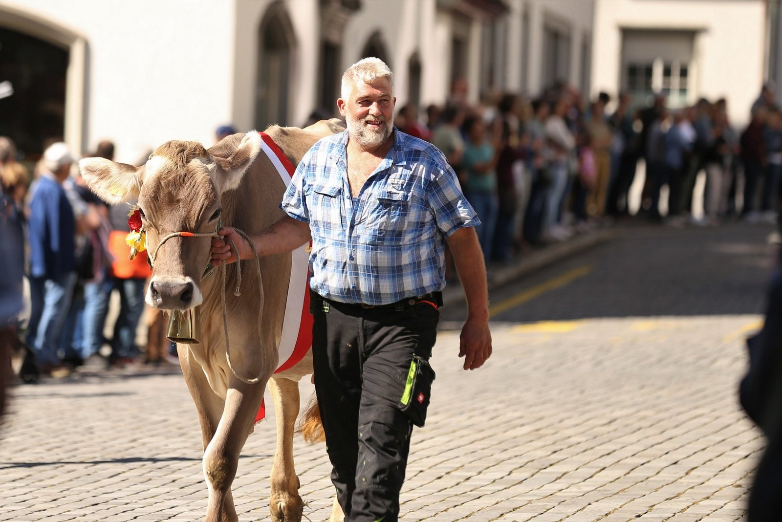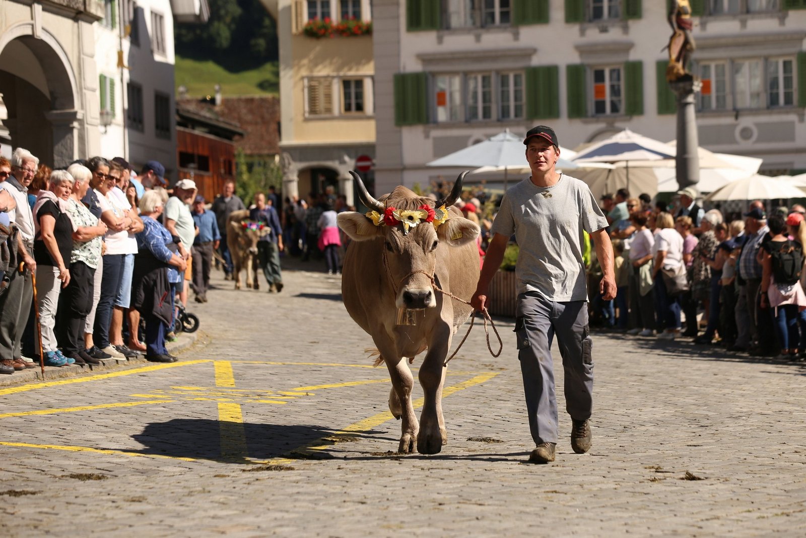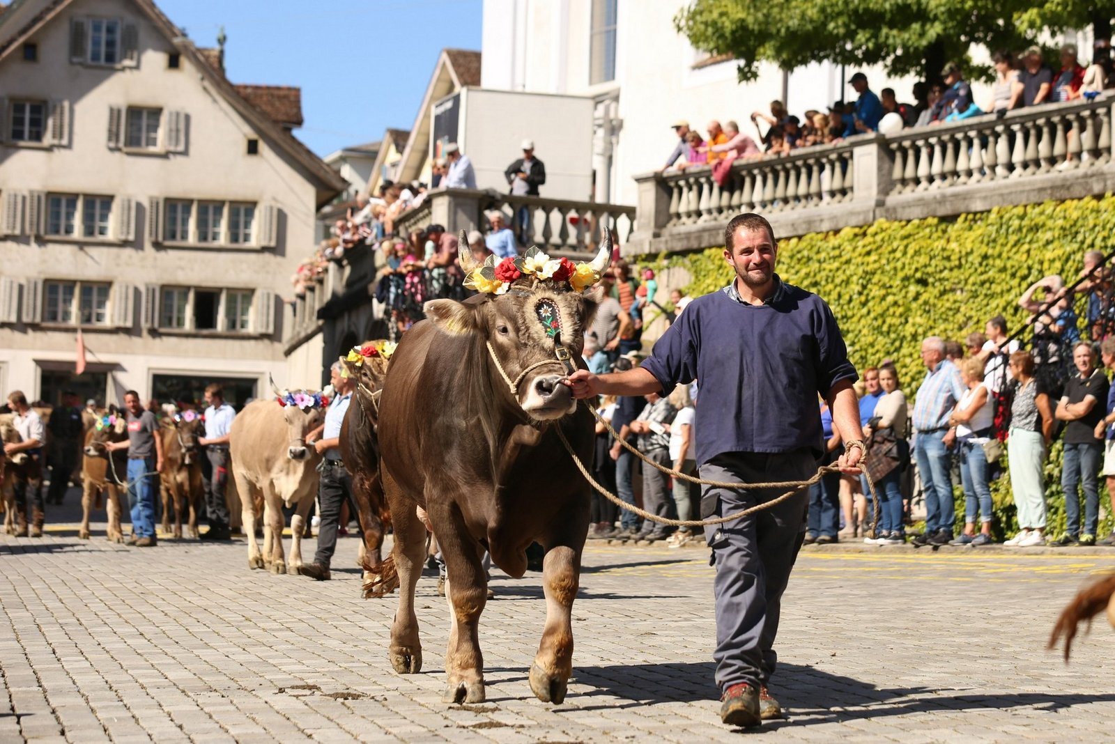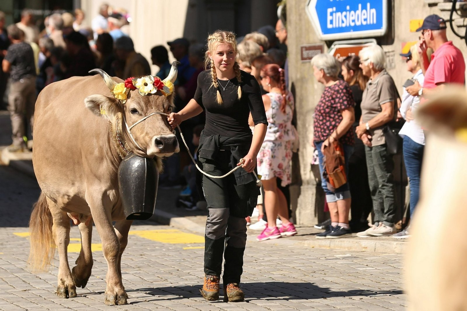 Die Viehausstellung im Kantonshauptort Schwyz ist traditionsgemäss die erste der fünf Bezirksviehschauen, welche jeweils in der letzten Septemberwoche stattfinden. Der Umzug durchs Dorf mit den Kranztieren lockte wieder viel Volk auf den Hauptplatz, entsprechend stolz präsentierten die Viehzüchterinnen und Züchter ihre Tiere.