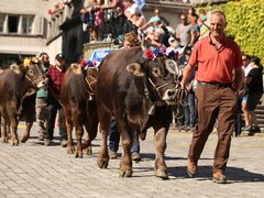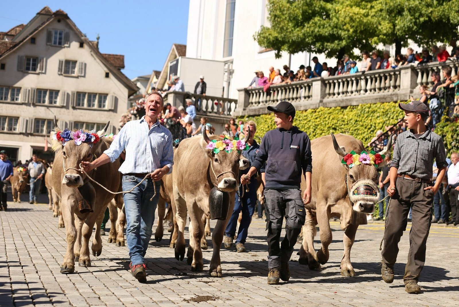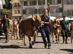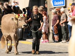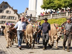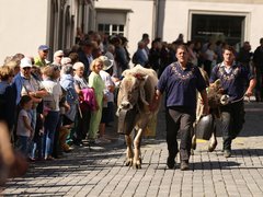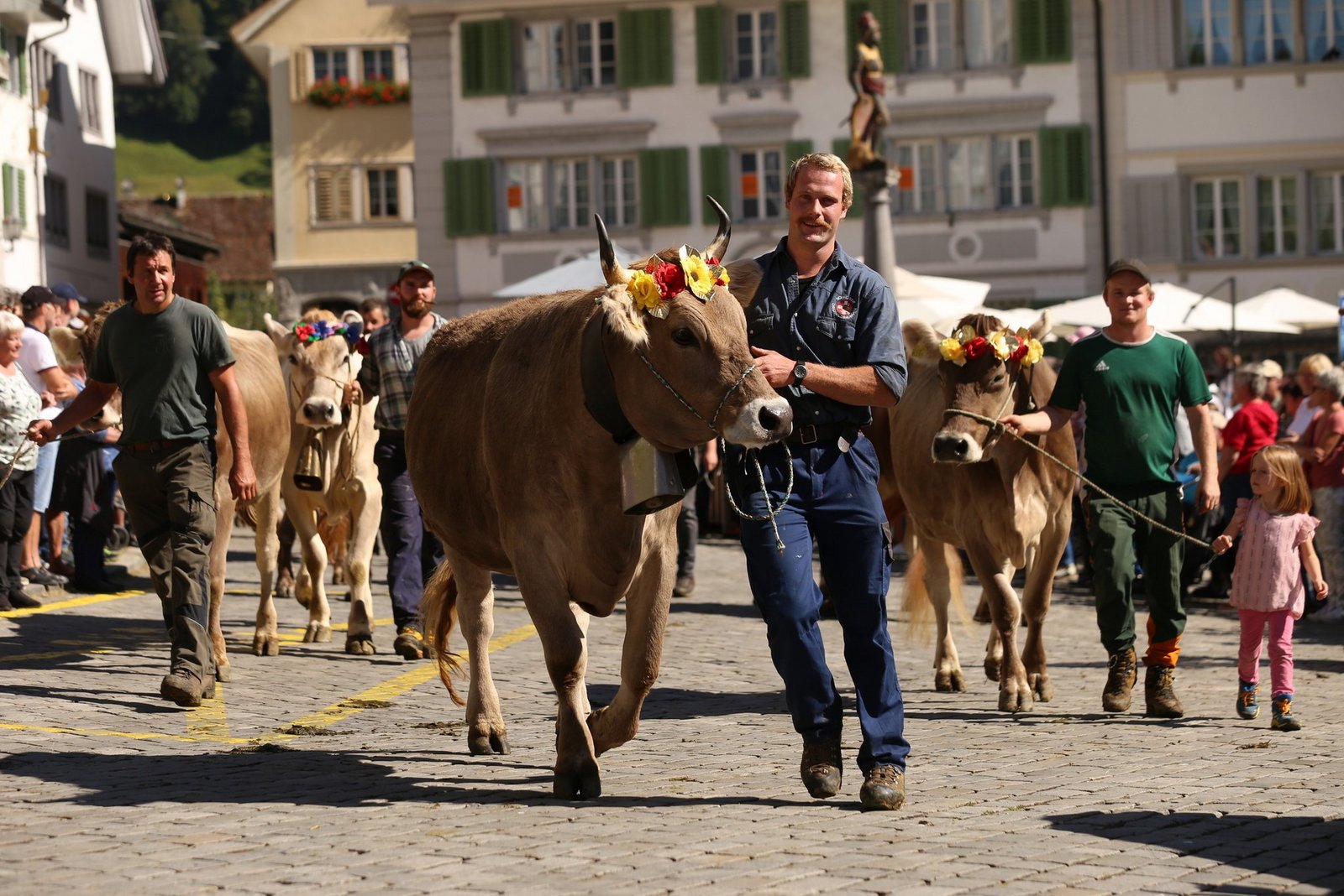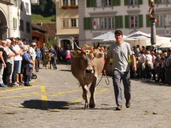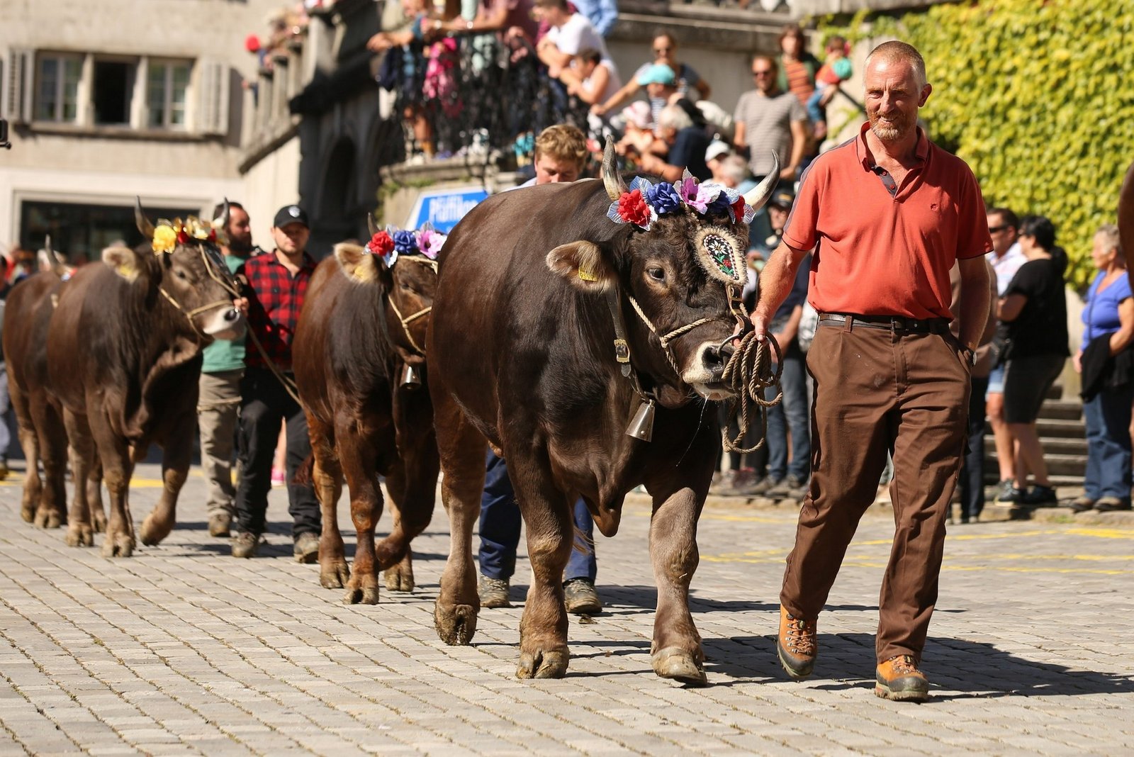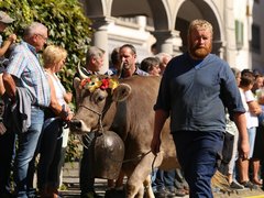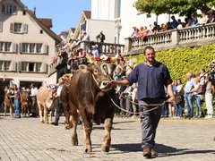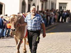 Die Viehausstellung im Kantonshauptort Schwyz ist traditionsgemäss die erste der fünf Bezirksviehschauen, welche jeweils in der letzten Septemberwoche stattfinden. Der Umzug durchs Dorf mit den Kranztieren lockte wieder viel Volk auf den Hauptplatz, entsprechend stolz präsentierten die Viehzüchterinnen und Züchter ihre Tiere.