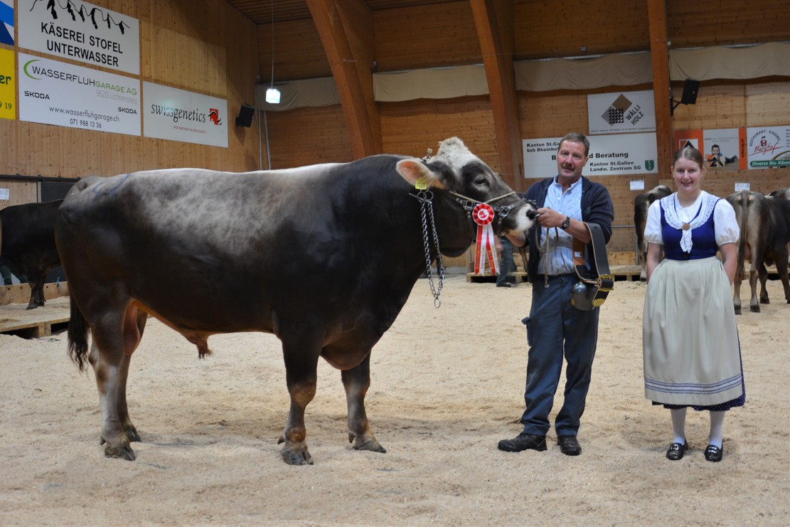 Den Sieg bei den ältesten BS-Stieren holte sich mit Holdrio-Sohn Jeffrey von Sandro Huser, Necker ebenfalls ein Sohn aus einer schauerfahrenen Zuchtlinie. Seine Mutter ist die mit Exzellent 96 beschriebene Alino Jamaica, die an der 19. Spitzen-Braunvieh-Show der Züchtergruppe St. Gallen Champion der jüngeren Kühe wurde. Über den begehrten Titel des Mister Genetik durfte sich Jürg Ammann aus Alt St. Johann freuen. Sein Stier Ammann's BS Aiven Sem überzeugte nicht nur mit einem zweiten Abteilungsrang, auch sein Gesamtzuchtwert von 1360 gefiel.