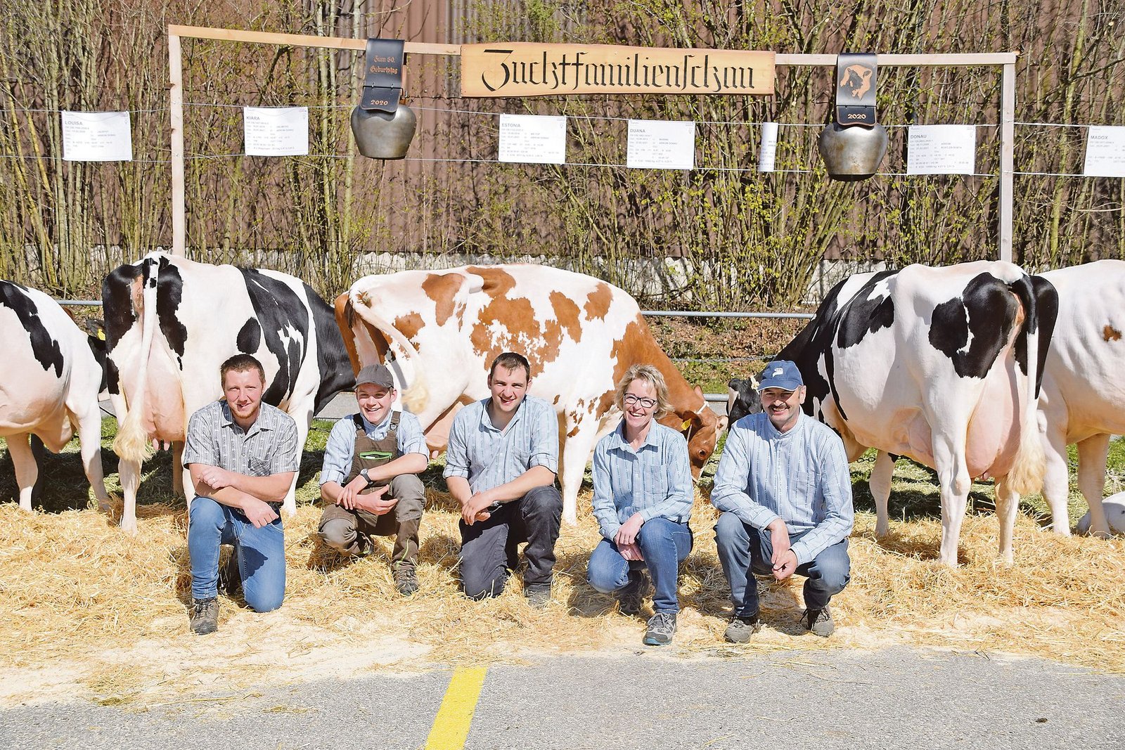 Landauf, landab finden zurzeit die Zuchtfamilienschauen statt. Über 300 sind es schweizweit dieses Jahr, davon ein grosser Teil im Kanton Bern. Sage und schreibe vier Zuchtfamilien (Allegro Canaria; Incas Cindy; Absolute Butterfly und Arrow Donau), konnten Christine und Jürg Streit aus Utzigen auf ihrem Betrieb präsentieren, eine davon schon zum zweiten Mal. Insgesamt waren es 25 Tiere. Der Lohn für ihre Zuchtarbeit war gross: Es gab drei A- und eine B-Klasse. Auch Urs und Franziska Salzmann aus Utzigen präsentierten eine Zuchtfamilie der Stammkuh Lista Gzim Kerstin. Sie liessen es sich nicht nehmen, diese auf dem gleichen Schauplatz zu präsentieren wie Streits. Kerstin und all ihre Nachkommen gehören der Rasse Holstein an. Am Schluss reichte es für eine Klasse B.