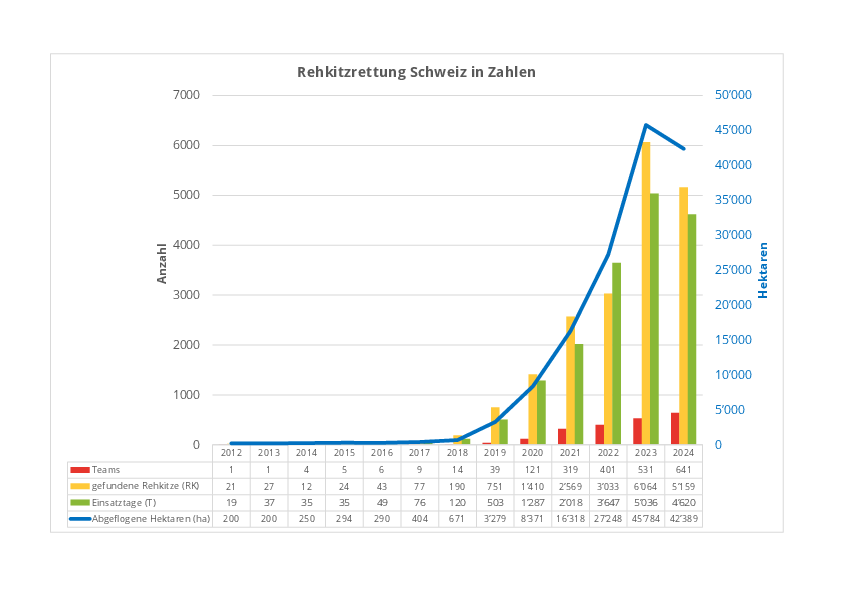 Wir haben insgesamt 5159 Rehkitze gerettet, meldet der Verein Rehkitzrettung Schweiz. Das seien etwa 1000 Rehkitze weniger als im letzten Jahr. Woran liegt das?