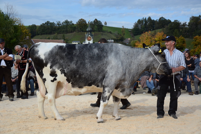 Dass sie nicht nur leistungsbereit, sondern auch willensstark ist, bewies sie, als Markus Gerber ihr schliesslich die Glocke um den Hals hängen wollte. Ihr absolut funktionelles Gangwerk setzte das Tier sofort in Bewegung und zeigte dem Swissherdbook-Präsidenten, dass sie sich nicht schmücken liesse, auch nicht mit einem Ehrenpreis. Gerber schmunzelte verständnisvoll und meinte: «Eine typische Recrue-Tochter. So sind sie einfach gewesen.»