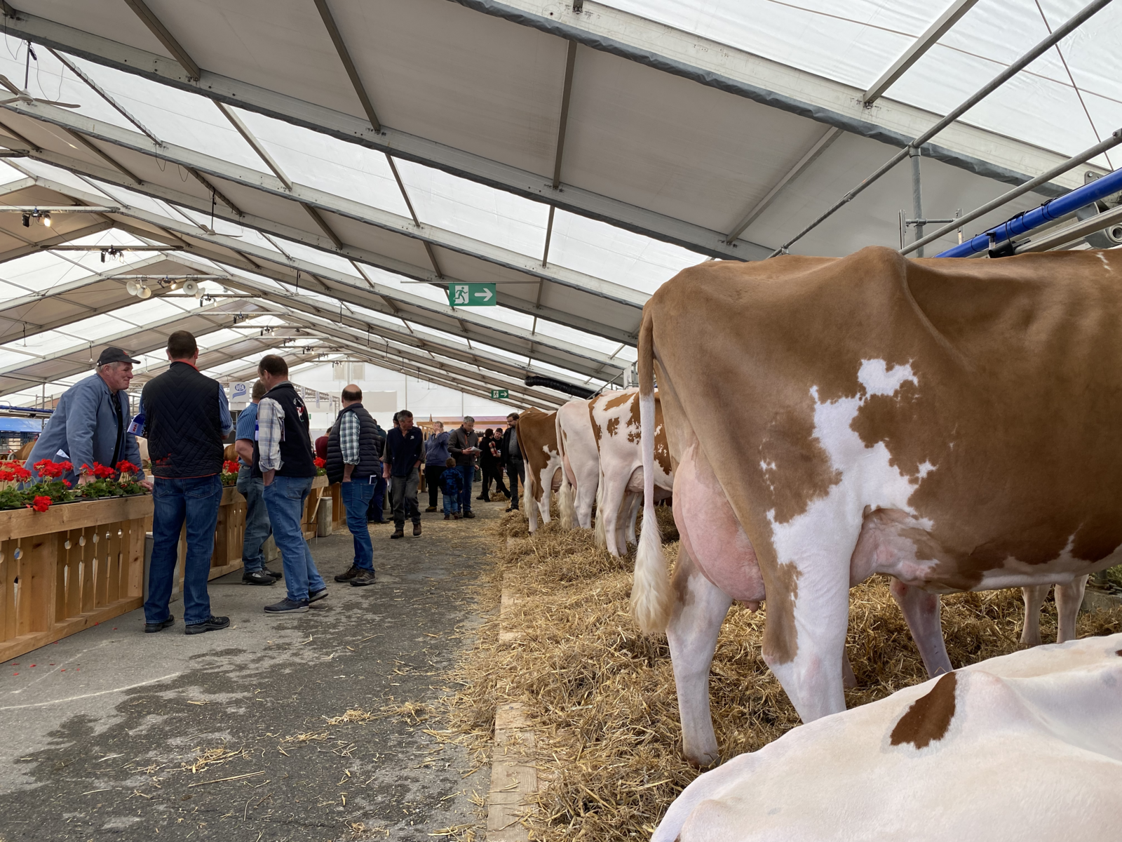 Santos, Martin Liechti und Bernhard Hadorn laufen an den Hallen vorbei. Der Kuhstall mit den Lägern, wo auch der Simmentalerstier die nächsten Tage verbringt, ist ganz hinten. Diverse Fahrzeuge kommen den dreien auf dem schmalen Weg entgegen. An ein Kreuzen ist nicht zu denken, dazu fehlt der Platz. So muss jeweils der Schwächere weichen – natürlich sind es jeweils die Fahrzeuge.