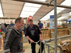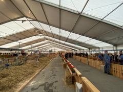 Auch wenn in der Halle schon emsiges Treiben herrscht – es müssen noch letzte Einrichtungen aufgestellt werden und die Viehzüchter führen ihre Tiere in die Hallen – es ist doch noch deutlich ruhiger, als es in den kommenden Tagen werden wird. Tausende von Besucherinnen und Besuchern werden jeden Tag an Santos vorbeigehen und staunen.