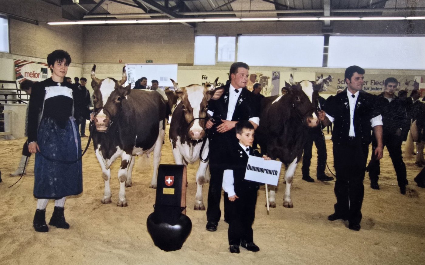 Die Viehzüchter aus Fahrni waren sowieso immer weltoffen, auch, als anfangs 1970er Jahre die Einkreuzung begann. «Mein Vater Hans und Hans Schneider vom Lueghubel waren die ersten, die mit RH-Blut besamten», sagt Rolf Dummermuth. Vor allem der Betrieb Schneider gehörte in dieser Zeit zu den besten RH-Zuchtbetrieben im Kanton Bern. «Sie hatten unglaublich schöne Kühe», so Dummermuth.