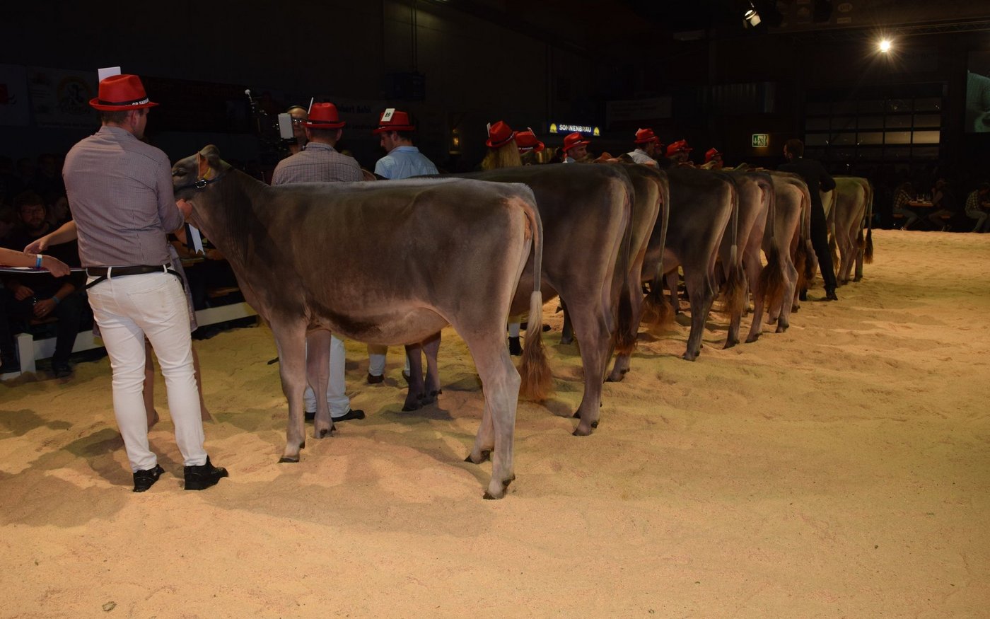 Besonders beeindruckt zeigte er sich von den Tieren in Abteilung 7. «Eine absolute Hammer-Abteilung. Die stärkste Abteilung des bisherigen Abends», so Gubelmann. Um den Abteilungssieg zeichnete sich ein Kopf-an-Kopf-Rennen ab, das Tischhausers Sorayo Jule von Hansueli Tischhauser, Krummenau SG, für sich entscheiden konnte. Ihr Schulterschluss und die Vorderrippen seien eine Spur ausgeprägter gewesen als jene der Zweitplatzierten Immenberg BS Jeff Camberra von Immenberg Brown Swiss aus Schönholzerswilen TG.