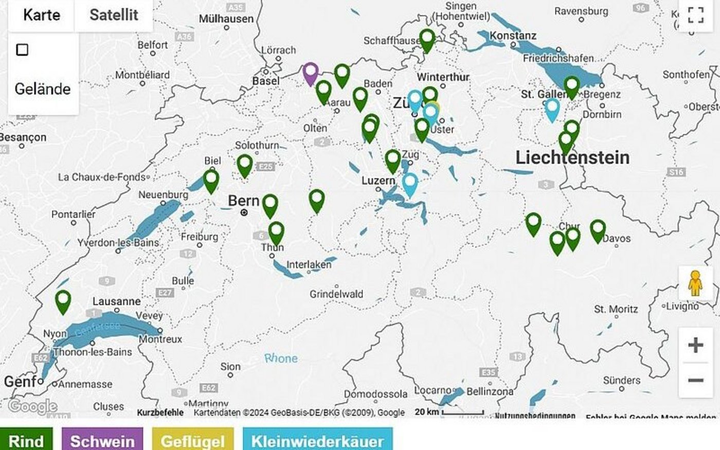 Das FiBL hat nun auf seinem Portal bioaktuell.ch zwei neue interaktive Karten aufgeschaltet, die sowohl Konsument(innen) wie auch Landwirt(innen) in Sachen Hoftötung erstmals einen schnellen Überblick ermöglichen.