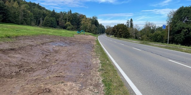 An diesem vorher landwirtschaftlich genutztem Standort entsteht ein Amphibientümpel. Vorher stand dort ein kleiner, nicht mehr genutzter Schopf, der abgerissen wurde.