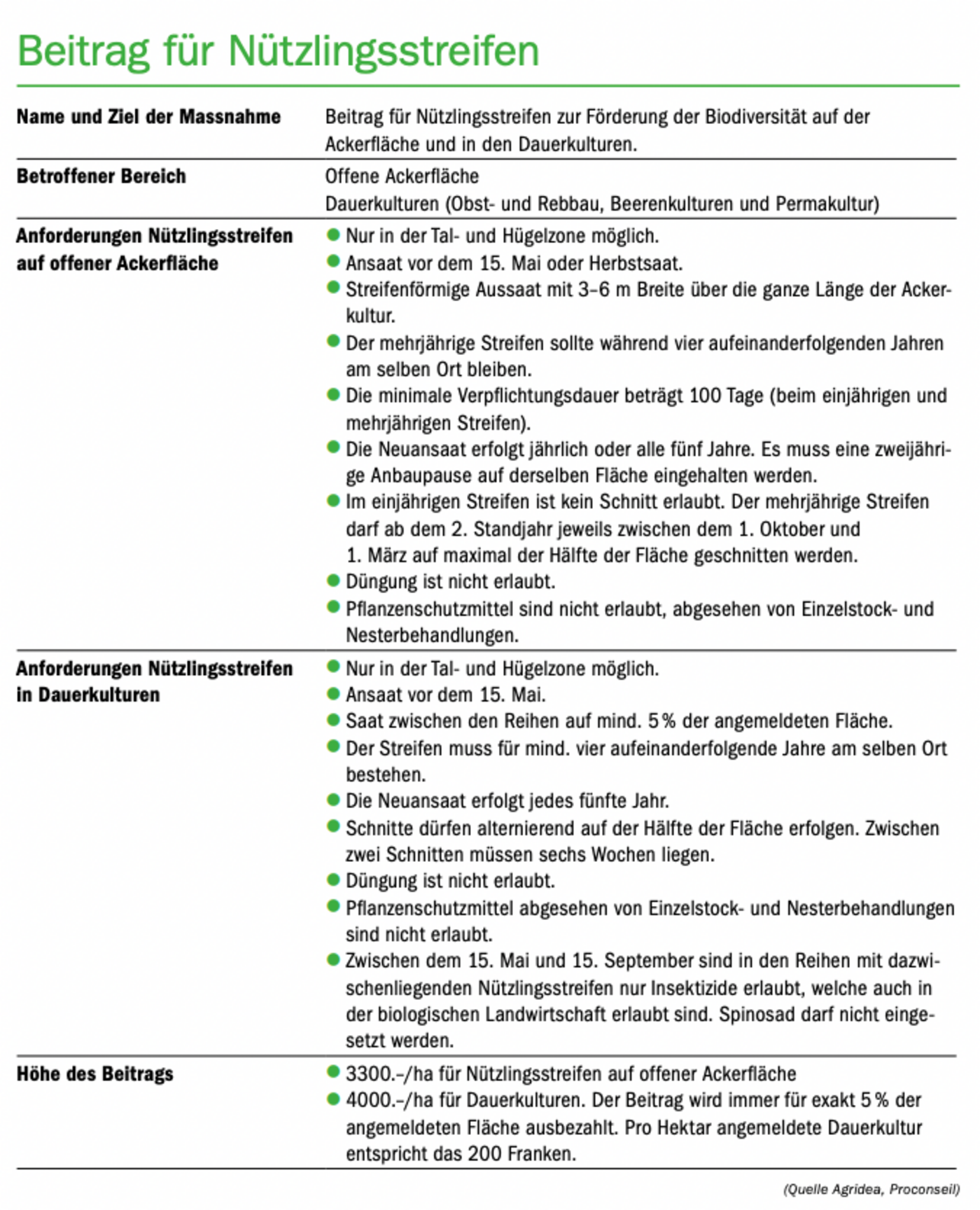 Für Nützlingsstreifen in Dauerkulturen gilt: