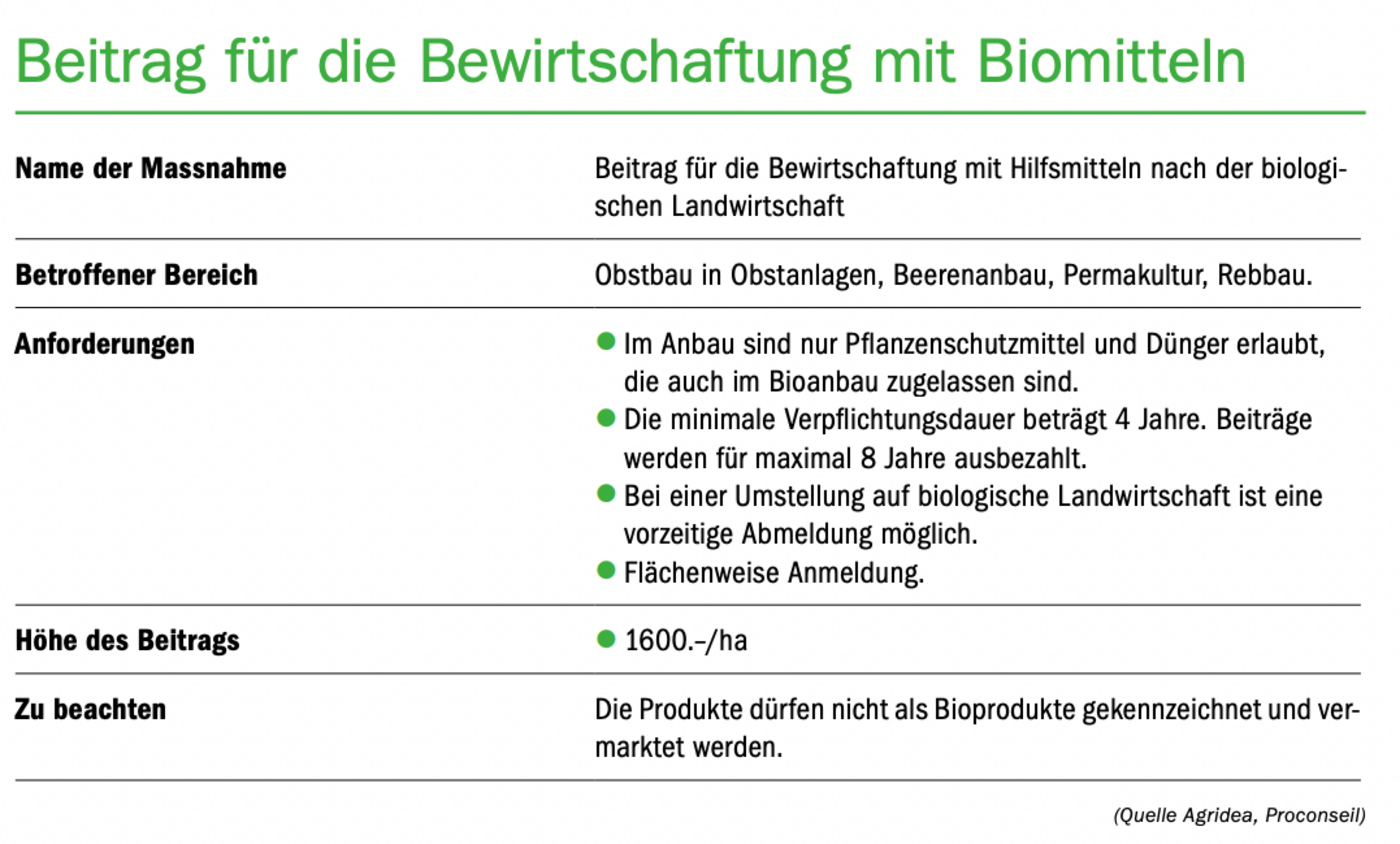 Zudem dürfen die drei risikoreichen PSM Cypermethrin, Deltamethrin und Lambda-Cyhalothrin mit einer Zulassung für den Obstbau im ÖLN nicht mehr verwendet werden. Die Schweizerische Arbeitsgruppe für Integrierte Obstproduktion (Saio) hat diese allerdings schon seit längerem nicht mehr zugelassen.