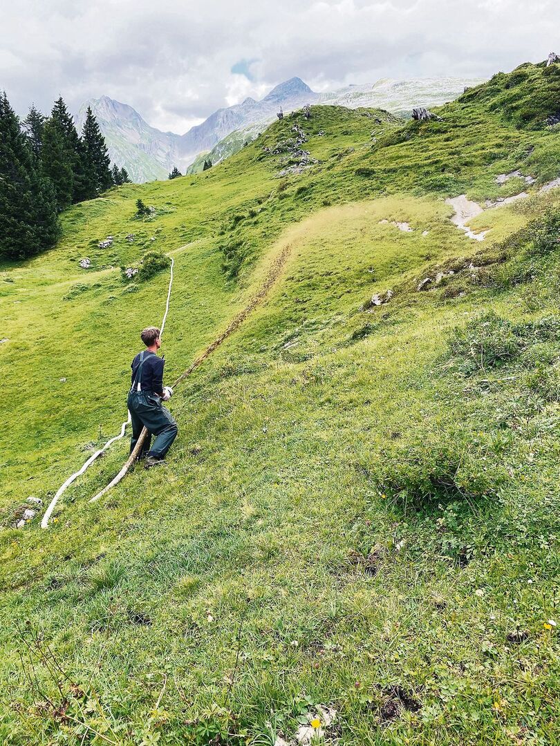 Gut zwei Monate sind wir nun schon z Alp und dies macht sich im Gülletrog bemerkbar. Vor allem die gewitterreichen Nächte, in denen wir die Milchkühe im Stall übernachten liessen, schlugen sich im Güllepegel nieder. Und da das Wetter weiterhin neblig und ohne heissen Sonnenschein ist, ist dies ideal zum Güllen. Kaum befahrbare Flächen Wie so viele Arbeiten ist auch diese hier oben etwas anders als wie gewohnt im…