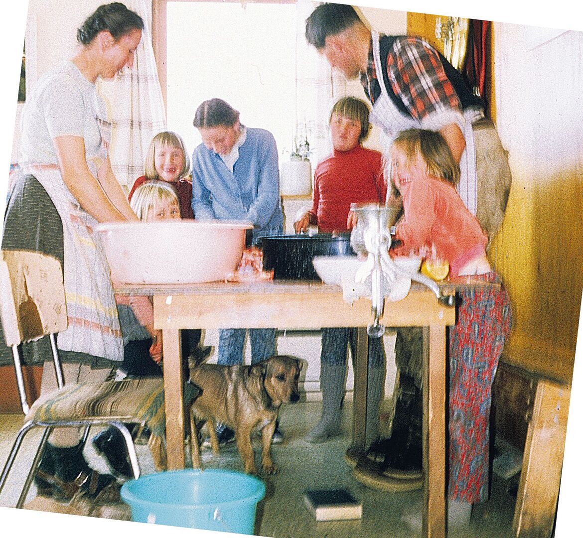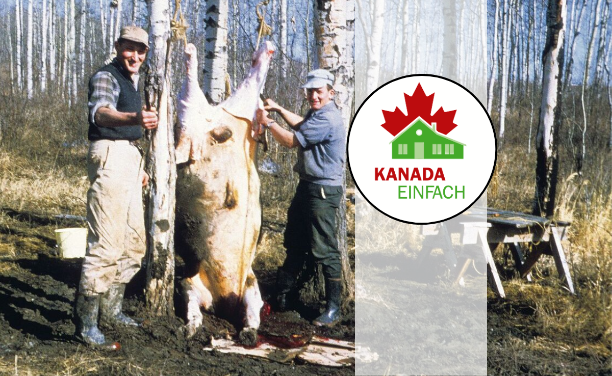 Wir Kinder kauern unter dem Tisch und stopfen uns die Ohren zu. «Der Schuss ist vorbei!», ruft unsere Mutter. Schnell purzeln wir hervor und rennen nach draussen zu unserem Vater. Wir haben zuvor geholfen, den Stier aus dem Stall zu führen. Nun liegt er tot, aber noch zuckend am Boden. Dad kniet daneben und schneidet den Kopf ab. Jetzt wird ein Seil um die Füsse des toten Körpers gelegt und über einen Balken…