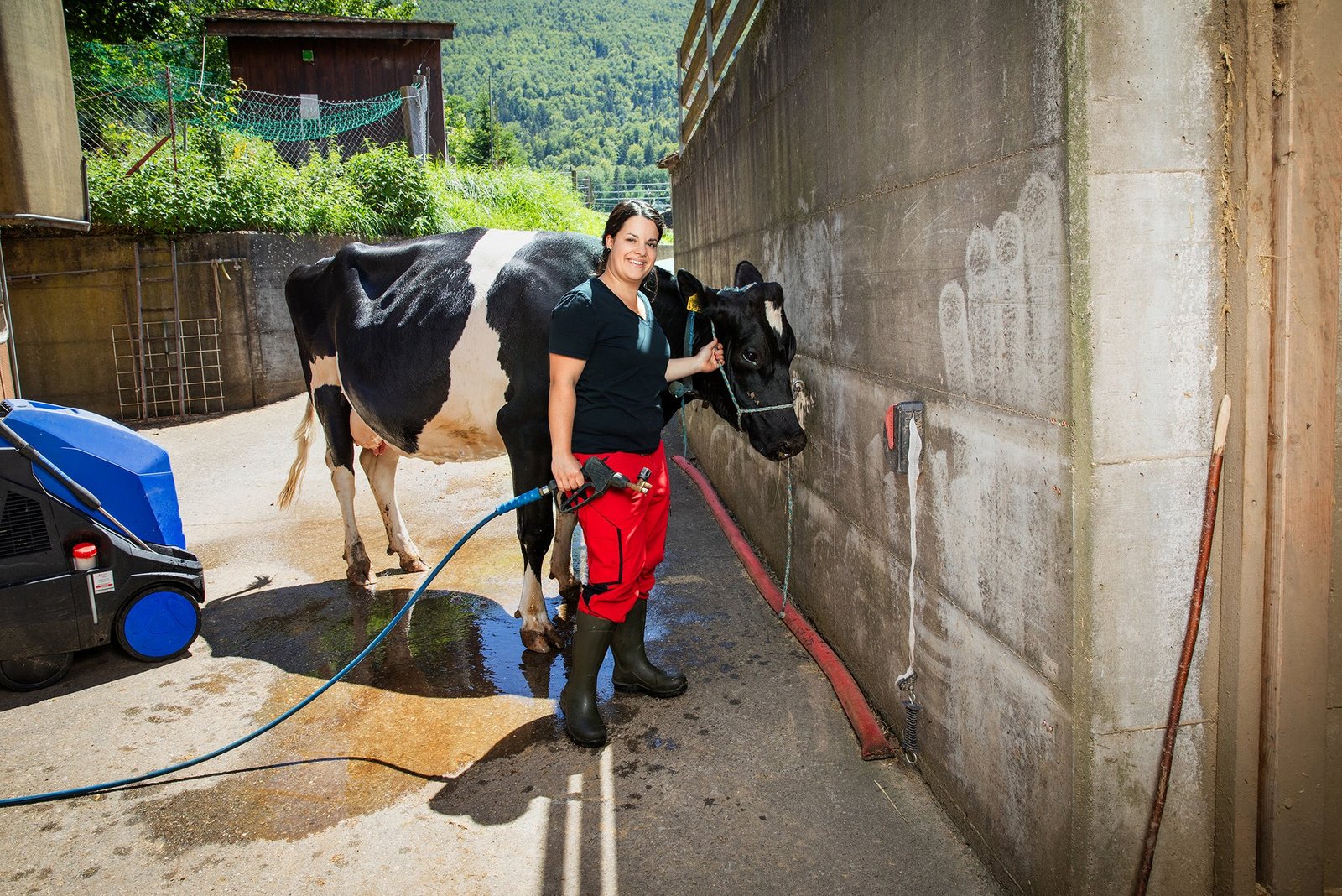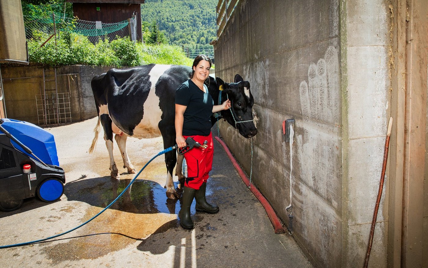 Geografisch steht Isabelle Kamber noch am selben Ort, sie nimmt heute aber natürlich eine ganz andere Rolle ein als in ihrer Kindheit. Die 29-Jährige ist Mutter von Emelie (6) und Sophie (9), arbeitet 40–60 Prozent auswärts als Floristin und hat sich zur Bäuerin FA weitergebildet. «Ich sehe die Ausbildung als Lebensschule, aber auch als Absicherung», erklärt Kamber. So wäre sie im schlimmsten Fall – wenn ihrem Mann etwas zustossen würde – ebenfalls direktzahlungsberechtigt.