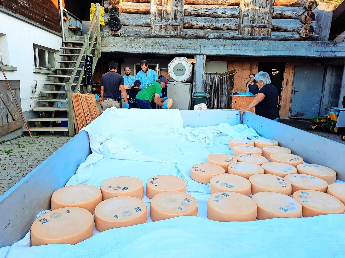 Seit dem 16. Juni produzieren Senn Reto und Zusenn Andreas täglich zwischen 18 und 24 Laibe Bündner Alpkäse. Die Anzahl Käse ist abhängig von der Milchmenge im Kessi. Für einen Alpkäse von fünf Kilogramm benötigt man ungefähr 50 Liter Alpenmilch. Das Käsen ist mit viel Handarbeit und Leidenschaft verbunden. Bis letzte Woche waren jeden Tag beide Käsekessi in Betrieb. [EXT 1] Zeitverschoben zogen Reto und Andreas…