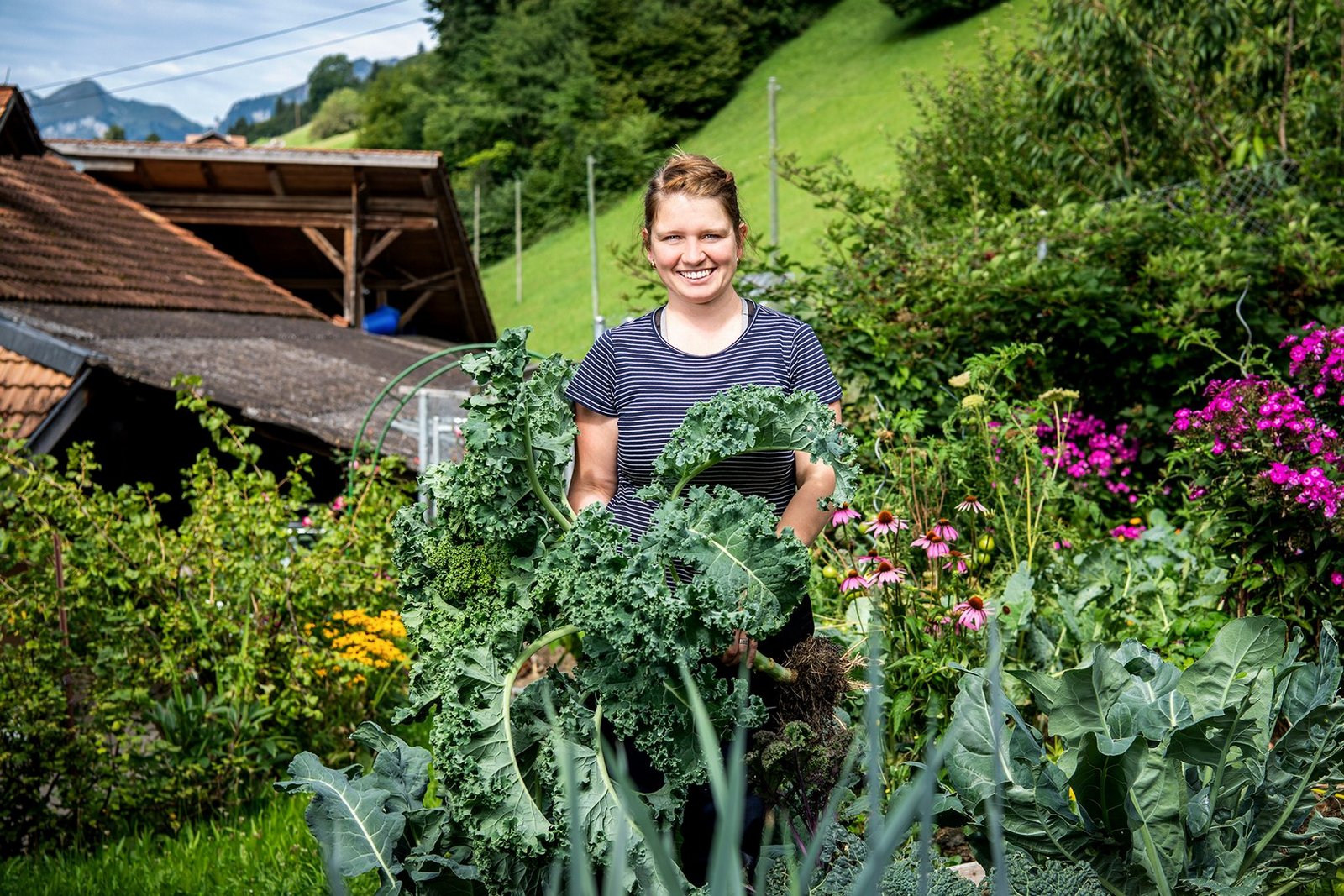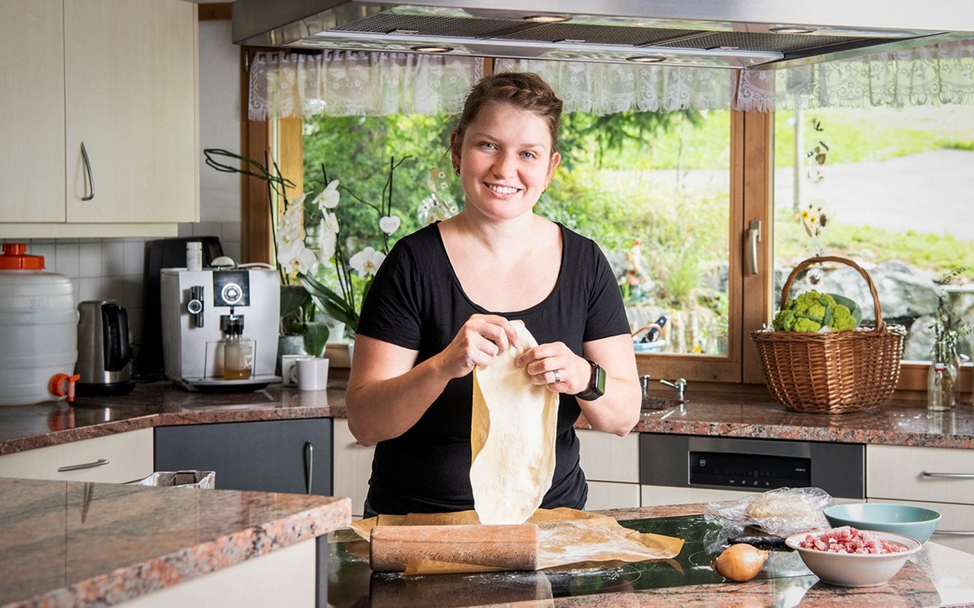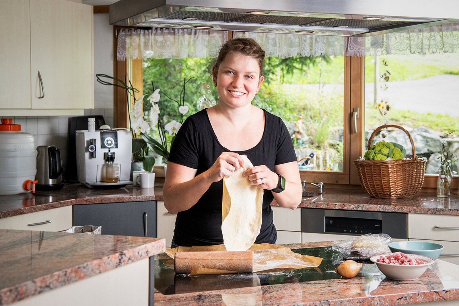 Sie sitzt am grossen Küchentisch des Bauernhauses, das etwas oberhalb des Dorfkerns steht und eine fantastische Aussicht bietet. Die Berner Oberländerin erzählt heiter weiter, dass sie sich mit der Anmeldung zur Landfrauenküche selbst ein Geschenk zum 30. Geburtstag gemacht habe. Während sie spricht, sitzen die beiden älteren Jungs daneben und sind mit Knetmasse beschäftigt. Der Jüngste kaut genüsslich auf einem Stück Brot. Als das Grosi ankommt und einen Spaziergang zum nahegelegenen Spielplatz ankündigt, wird die Knetmasse schnell an ihren Platz versorgt. Mit strahlenden Augen blickt Milena Knutti ihren Liebsten hinterher.
