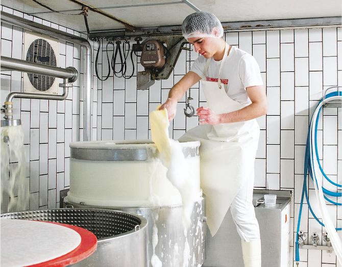 Claudio Macaluso steht nicht gerne rum. Kaum in der Käserei, macht er sich nützlich: Er kontrolliert den Käsebruch, nimmt die beiden Propeller vom Rührwerk aus dem Käsefertiger und wirft die Pumpe an, die das Molken-Käse-Gemisch in die Käseformen pumpt.Jeder Handgriff sitzt, der Milchtechnologe lässt keine Zweifel daran aufkommen, dass er sein Metier beherrscht und dass er halbe Sachen nicht mag. Eigentlich hätte er…