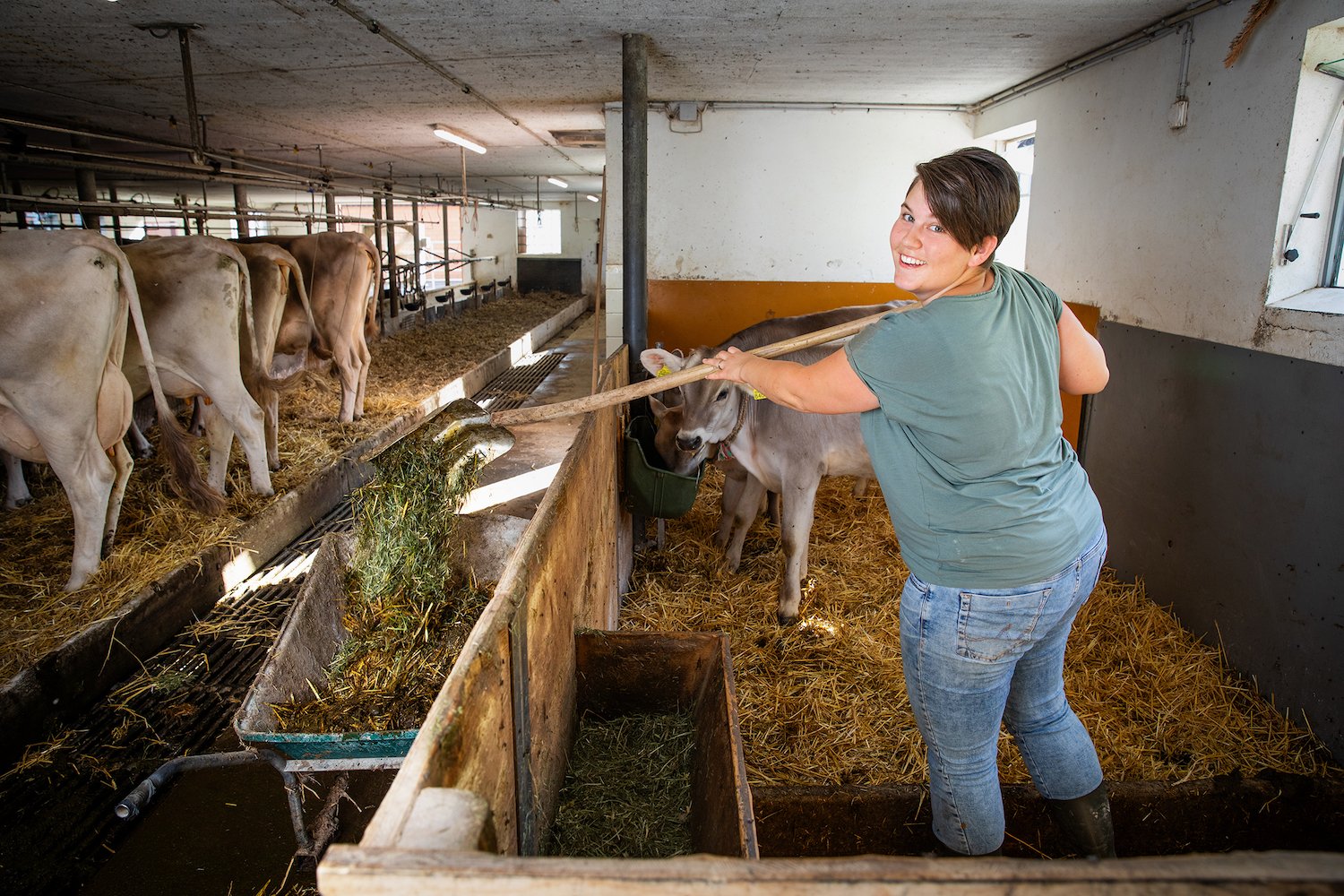 Sira wedelt kräftig mit dem Schwanz. Die Appenzeller Mischlingshündin freut sich sichtlich, wenn sie von Besucherinnen und Besucher Aufmerksamkeit erhält. Dazu hatte sie in letzter Zeit oft Gelegenheit, denn Gäste gab es auf dem Hof in Grub AR einige: Bäuerin Aurelia Nauer ist Teilnehmerin an der diesjährigen SRF-Landfrauenküche. Höhepunkt dabei ist das Anrichten des dreigängigen Menus (das hier nicht verraten werden…