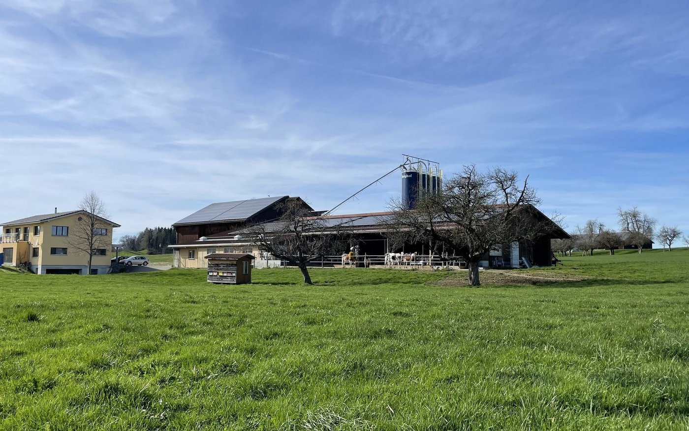 Die Sonne strahlt in voller Pracht über dem Zelghof im Sankt-Galler Dorf Gossau. Die nackten Apfelbäume vor dem Haus bilden langsam Knospen; der Frühling naht. «Im Frühjahr spritzen wir die Apfel- und Zwetschgenbäume», sagt Simon Broger. «Im Herbst sammeln und ernten wir dann die Äpfel und Zwetschgen, das gehört aber nicht zu meinen Lieblingsarbeiten auf dem Hof», schmunzelt er.