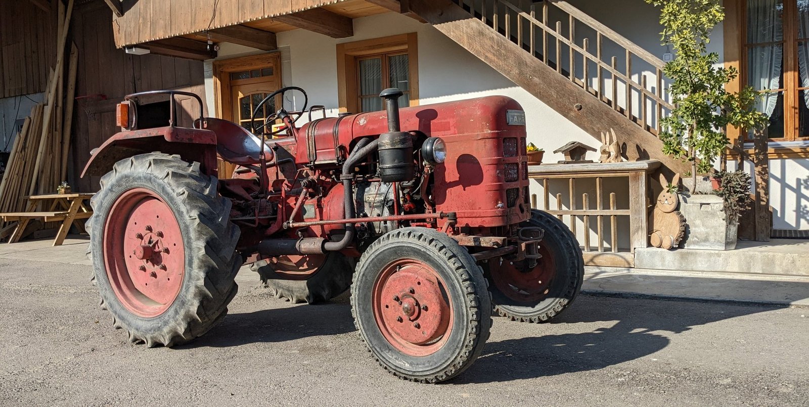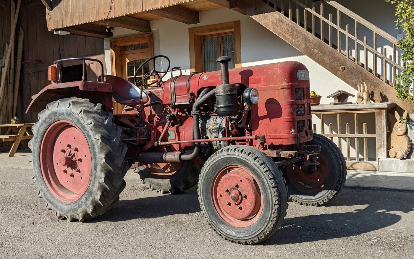 Mein Grossvater hat den Fahr D180H (Bj. 1958) im Jahre 1964 beim damaligen Landmaschinenmechaniker im Dorf gekauft. Der Traktor war davor als Ausstellungsmodell an vielen Orten zu sehen. Es war der erste Traktor, den meine Grosseltern gekauft hatten. Zuvor haben sie alle Arbeiten mit ihren zwei Pferden und von Hand erledigt. Der Fahr war bis etwa 1982 der Traktor für alles. Danach hat mein Grossvater einen Fiat 500…