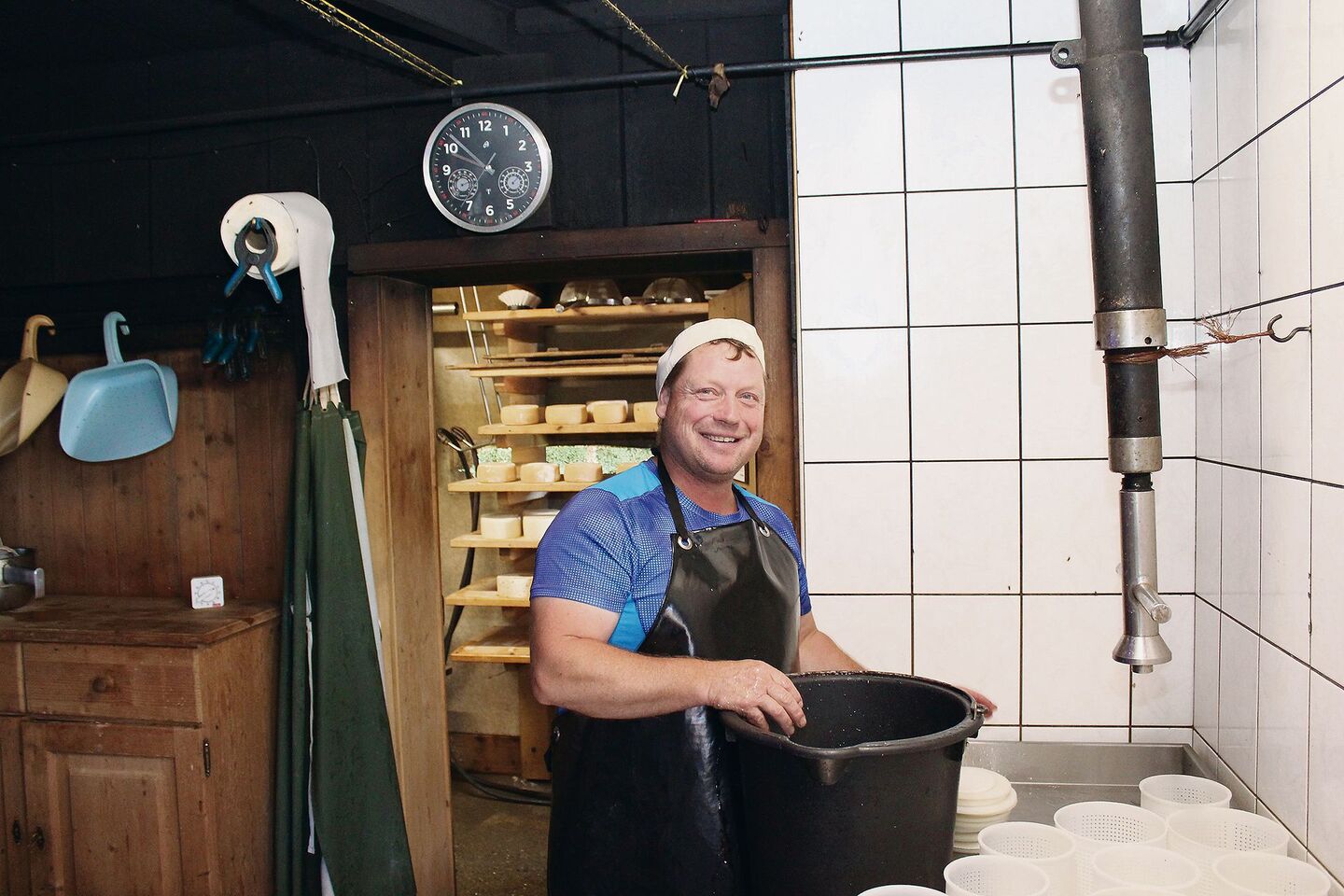 Wer auf der Terrasse der Alphütte Heubühlen-Bohlseite auf 1330 m ü. M., oberhalb von Habkern im Berner Oberland steht, geniesst den Ausblick. Aber drinnen in der Alphütte steht Käser Roland Brunner am kupfernen Käsekessi. Schon früh am Morgen hat er seine 15 Swiss Fleckvieh im Stall gemolken. Jetzt ruhen sie zufrieden im Stall auf der Streue, nur der Käser hat keine Zeit zum Ruhen, denn heute will er Mutschli…