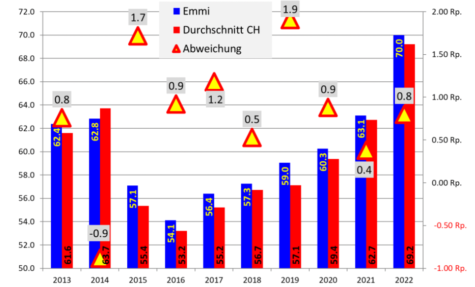 Die gestiegenen Kosten und das kleinere Angebot an Milch hätten in Europa und in der Schweiz zu den höchsten Milchpreisen seit dem Ausstieg aus der Milchkontingentierung geführt, sagte Schlegel. «Aber gerade intensiv produzierende Betriebe mit hohen Input-Kosten gehören zu den Verlierern in der Milchwirtschaft im letzten Jahr, weil die gestiegenen Kosten die Milchpreissteigerungen bei diesen Betrieben oft übertrafen», so die Präsidentin.