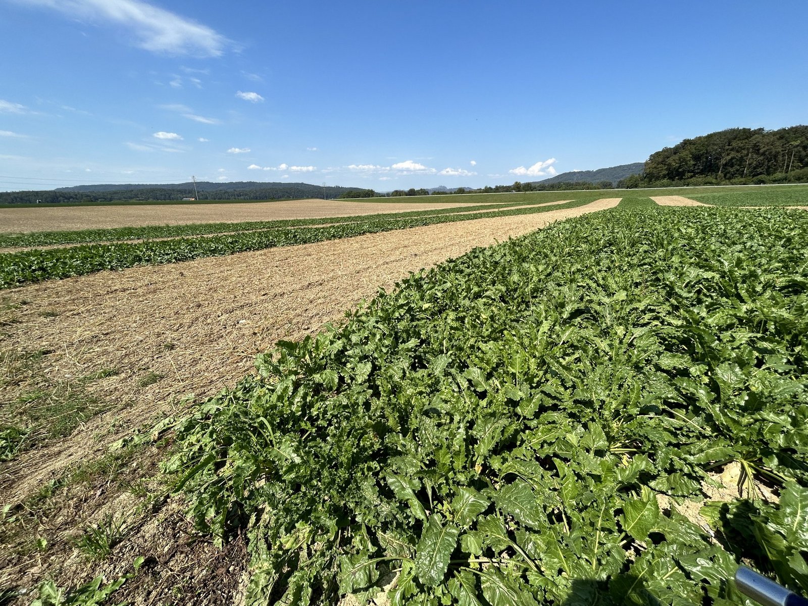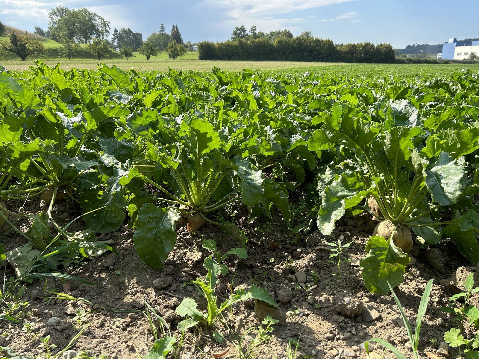 Getreide, Mais, Soja und eben auch Zuckerrüben baut Urban Dörig auf seinem Betrieb Katharinental in Diessenhofen TG auf Dämmen an. «Das hat 2022 bei Zuckerrüben gut funktioniert. Heuer, mit dem nassen Frühling, war es schwieriger», sagte Dörig am Biozuckerrübentag. Nötig waren rund 170 Stunden Handarbeit. «Das kann sich mit dem Preis für Umstellrüben nicht rechnen», sagte Dörig, der im zweiten Umstelljahr ist. Aber…