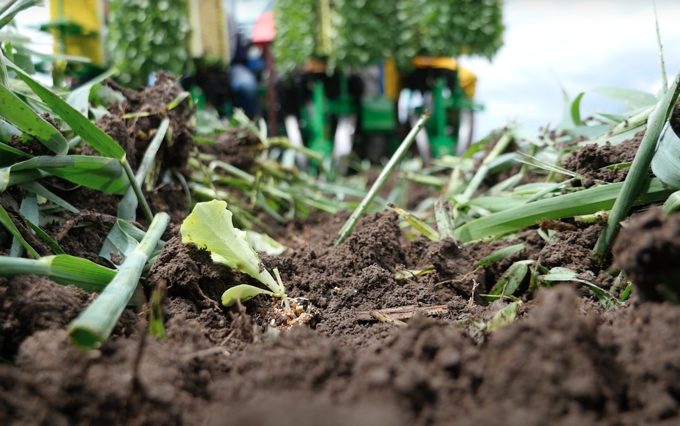 Bei Versuchen der HAFL und des Inforama Seeland anlässlich der No-Till-Feldtage 2021 in Witzwil BE pflanzte man Kabis-Speedy-Jungpflanzen im Strip-Till-Verfahren direkt in Grünschnittroggen. Dieser wurde mit einer Messerwalze gequetscht und zusätzlich einen Tag vor der Pflanzung mit einem Herbizid gespritzt, damit die Pflanze später nicht wieder aufsteht. Wie Martin Freund, Ressortleiter Gemüse am Inforama in einem Video erklärt, sollte das Walzen alleine ausreichen, falls die Blüte des Roggens abgewartet wird. In die schmalen bearbeiteten Pflanzstreifen könne ein Vorauflaufherbizid gespritzt werden, das bis zum Reihenschluss nach zwei bis vier Wochen das Unkraut unterdrückt.