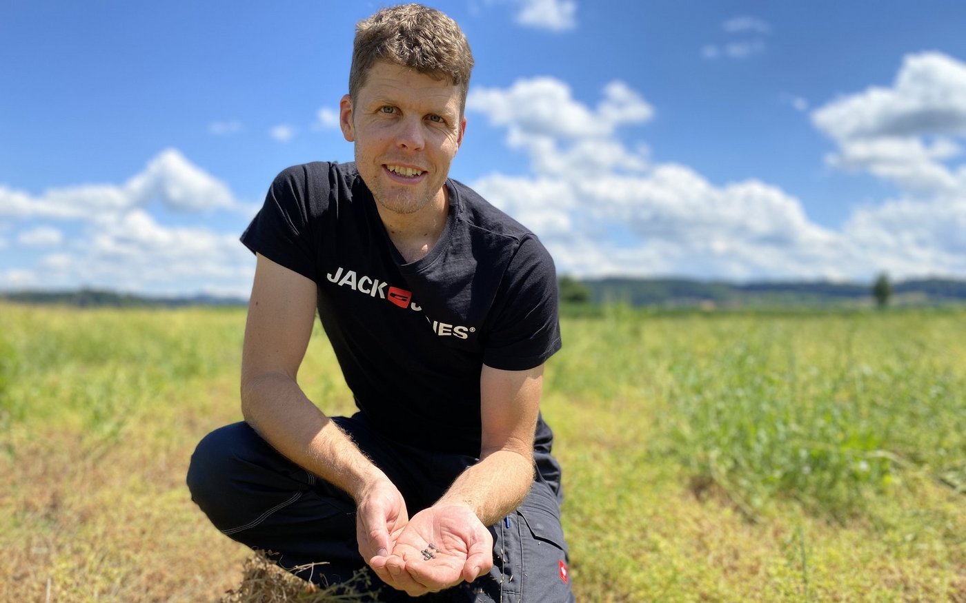 «Linsen brauchen viel Nerven», konstatiert Simon Hauert. Er bezieht sich nicht aufs Kochen, denn seine grün-melierten Anicia müssen nicht wie andere Körnerleguminosen vorher eingelegt werden. Nach zwei guten Jahren verzeichnete der Berner 2021 eine sehr kleine Ernte und auch heuer sieht sein Feld in Niederösch BE nicht besonders gut aus. Trotzdem spürt man Hauerts Freude an der Kultur, wenn er beschreibt, wie unter besseren Bedingungen ein weicher grüner Teppich aus zarten Pflänzchen wächst.