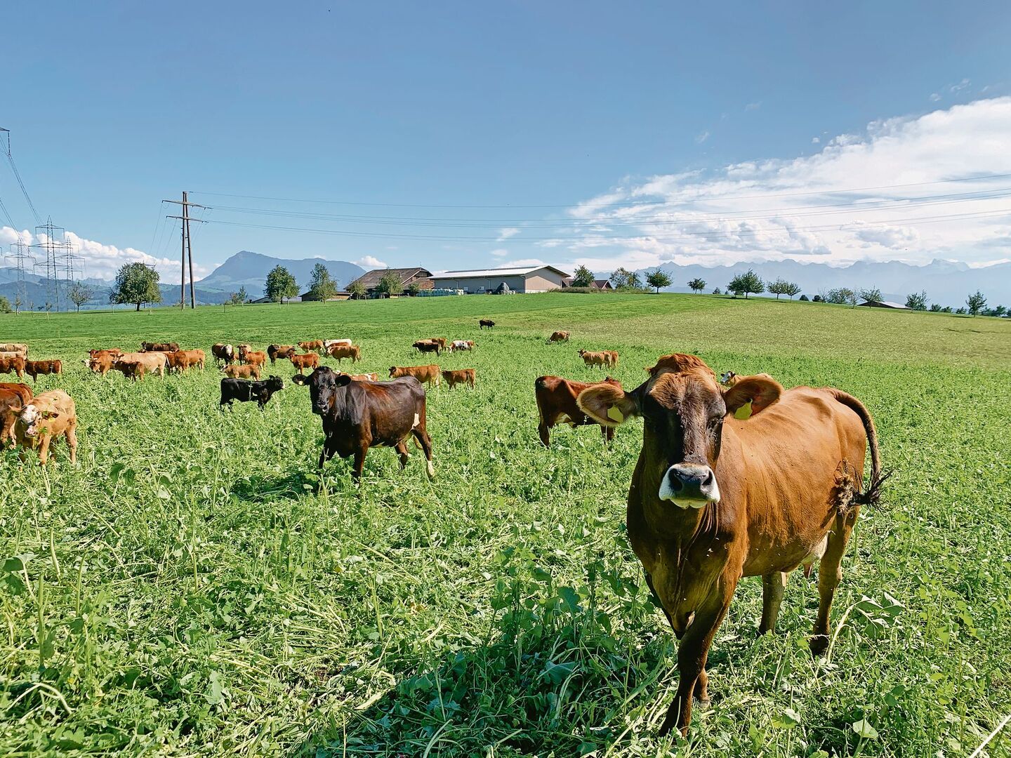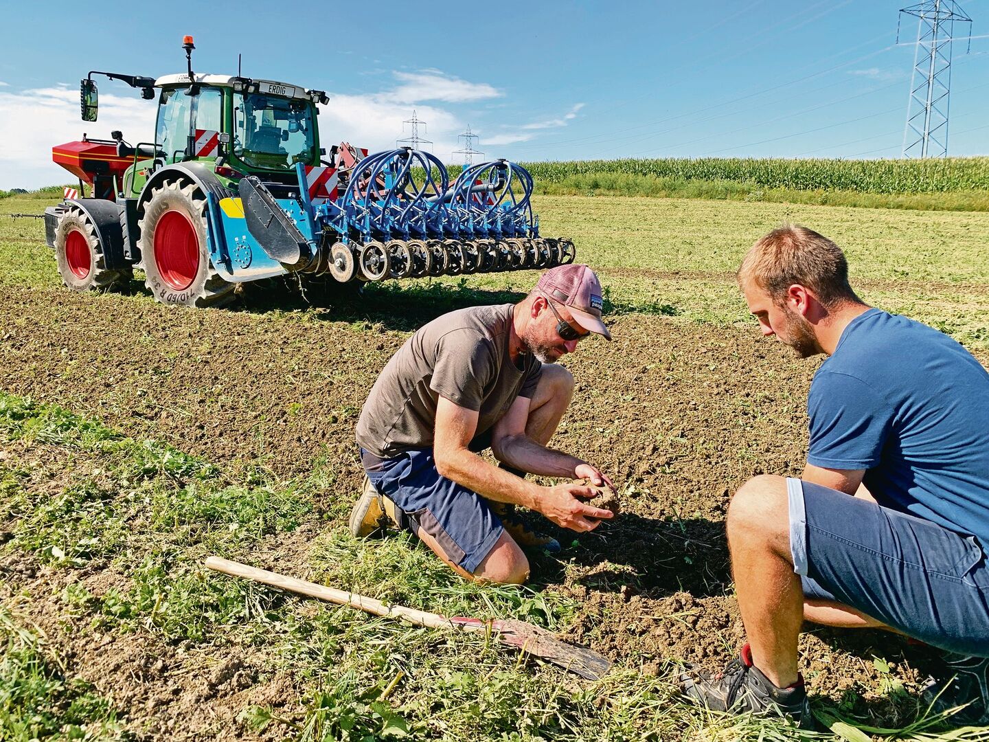 «Meine Kühe mulchen mir gratis», sagt Alois Bächler vom Hof Rutzigen. Die 30 Mutterkühe stehen mit ihren jungen Weide-Beef in hohem Kraut und fressen und trampeln die nach Weizen eingesäte Gründüngung nieder. Nebenan sät an diesem Samstagnachmittag Mitte September Unternehmer Alain Huber von der Firma Erdig Inwil mit einer neuartigen Maschinenkombination eine Kunstwiese an. [IMG 2] In einem Arbeitsgang Vorne wird…