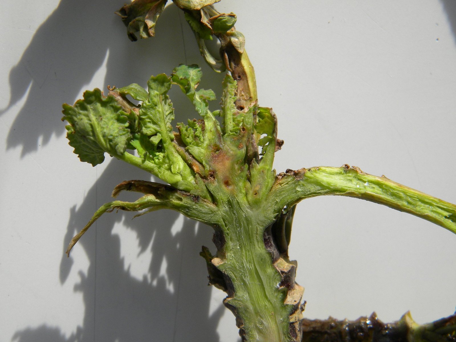 Ist der Haupttrieb der Rapspflanze verdreht, verkrüppelt oder fehlt er ganz, dann handelt es sich höchstwahrscheinlich um einen Erdfloh-Befall, informiert die Strickhof Fachstelle Pflanzenschutz. Wird der Haupttrieb aufgeschnitten, entdeckt man braune Frassgänge und mind. eine Larve. Betroffene Bestände sollten gemäss Fachstelle nicht aufgegeben werden! Denn die Pflanze aktiviert Seitenknospen und Seitentriebe, die den Ausfall des Haupttriebs kompensieren werden. Stark ist dem Glanzkäfer dann Beachtung zu schenken, damit dieser die Seitentriebe nicht schädigt.