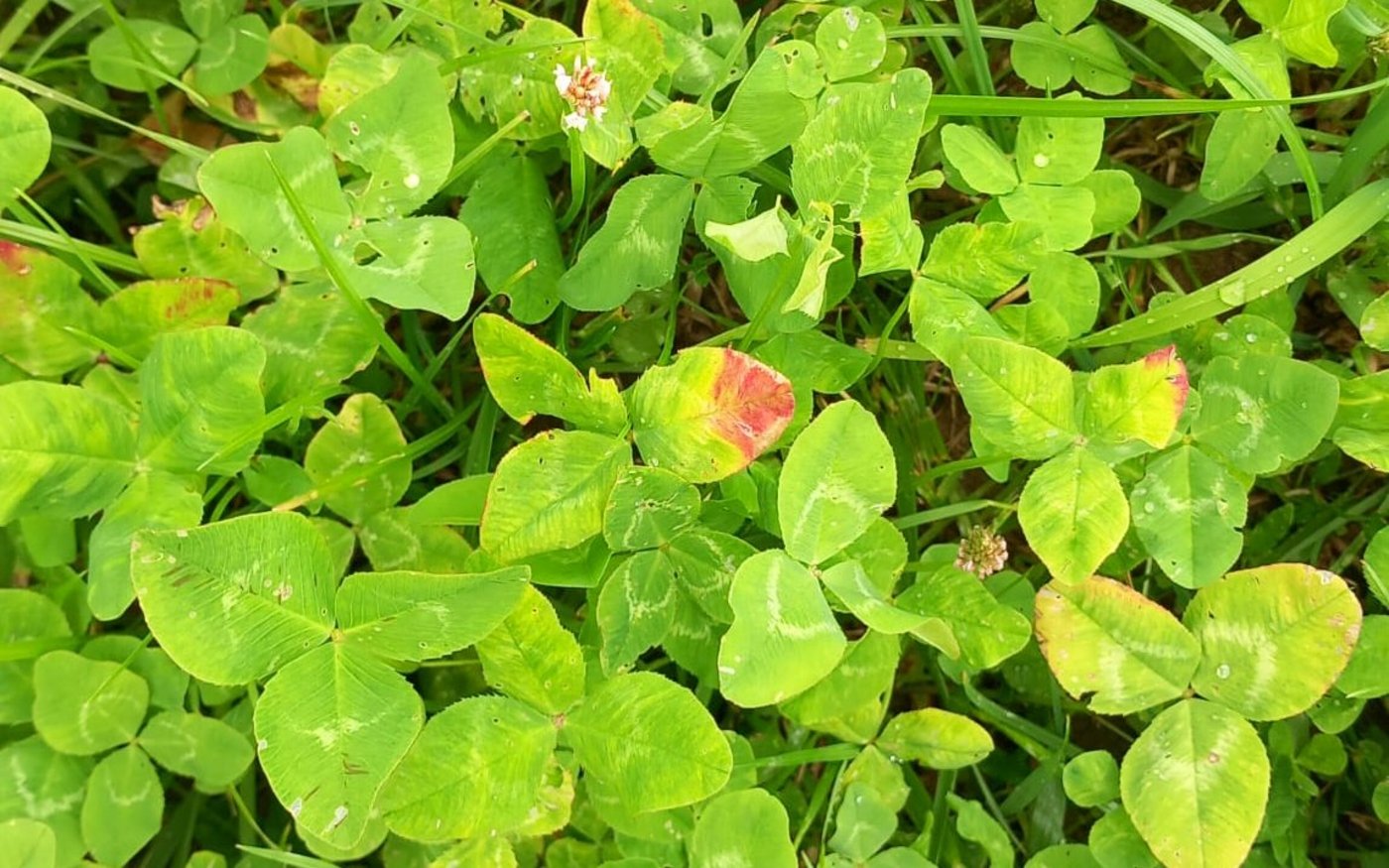 Luisa Rusca beobachtete Weisskleepflanzen mit missgebildeten Blütenköpfen. Mit der Internetseite www.pflanzenkrankheiten.ch liess sich rasch bestimmen, dass es sich um die sogenannte Phyllodie handelt, eine infektiöse Krankheit von Rot- und Weissklee. Bedingt durch den milden Winter dürften viele infektiöse Kleinzikaden überlebt haben und die Krankheit von kranken auf gesunde Kleepflanzen übertragen. Zwar wird die Tätigkeit der Knöllchenbakterien reduziert und die Kleepflanzen können vorzeitig absterben. Wirtschaftlich bedeutend ist dies bei der Saatgutvermehrung, weil die Samenproduktion ausbleibt.