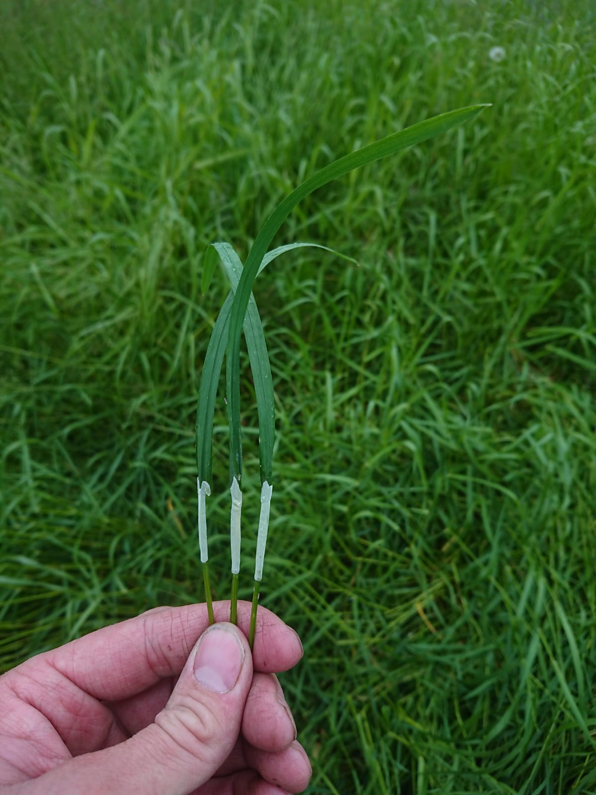 Sogenannte Endophyten leben symbiontisch im Inneren von Pflanzen und verleihen ihnen teils erwünschte Eigenschaften wie Schutz vor Insektenfrass, können aber auch giftige Stoffe bilden. Sie werden teilweise bewusst bei der Pflanzenzucht eingesetzt und werden jeweils von Generation zu Generation weitergegeben. Im vorliegenden Fall hat Valentin Stocker einen Gras-Kernpilz (Epichloë) beobachtet, erkennbar an einer weissen Scheide um den Stängel des Raigrases. Es werden Lolinalkaloide gebildet, welche die Pflanze vor Feinden schützen: Lolin und Peramin sind toxisch für Insekten, jedoch nur gering toxisch für Säugetiere. In der Schweiz wurden bei Wiesen-Schwingel schon hohe Lolingehalte festgestellt. Im Allgemeinen muss aber nicht mit gesundheitlichen Konsequenzen gerechnet werden.