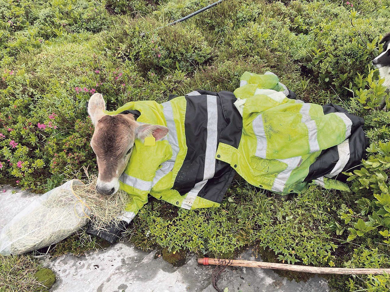 Am nächsten Morgen um 6.30 Uhr zogen mein Bruder und ich los, um die Patientin zu betreuen. Diese war einigermassen heil auf, jedoch fanden wir beim Rückweg bereits das nächste Kalb in einem Loch. Und ein weiteres war zirka vier Meter die Felswand hinuntergestürzt.