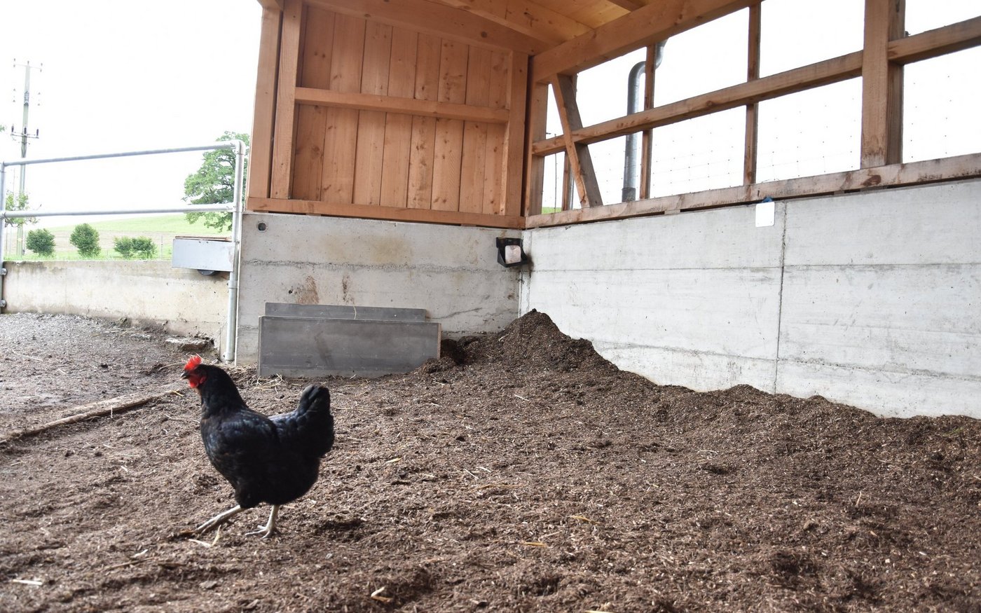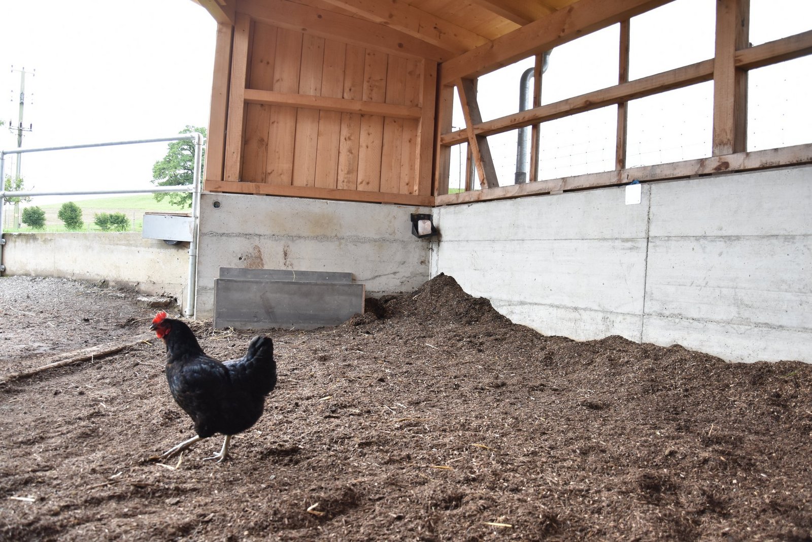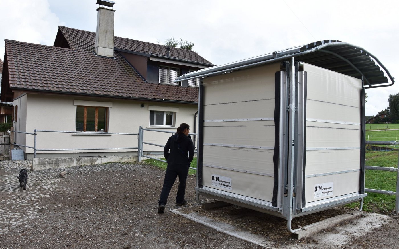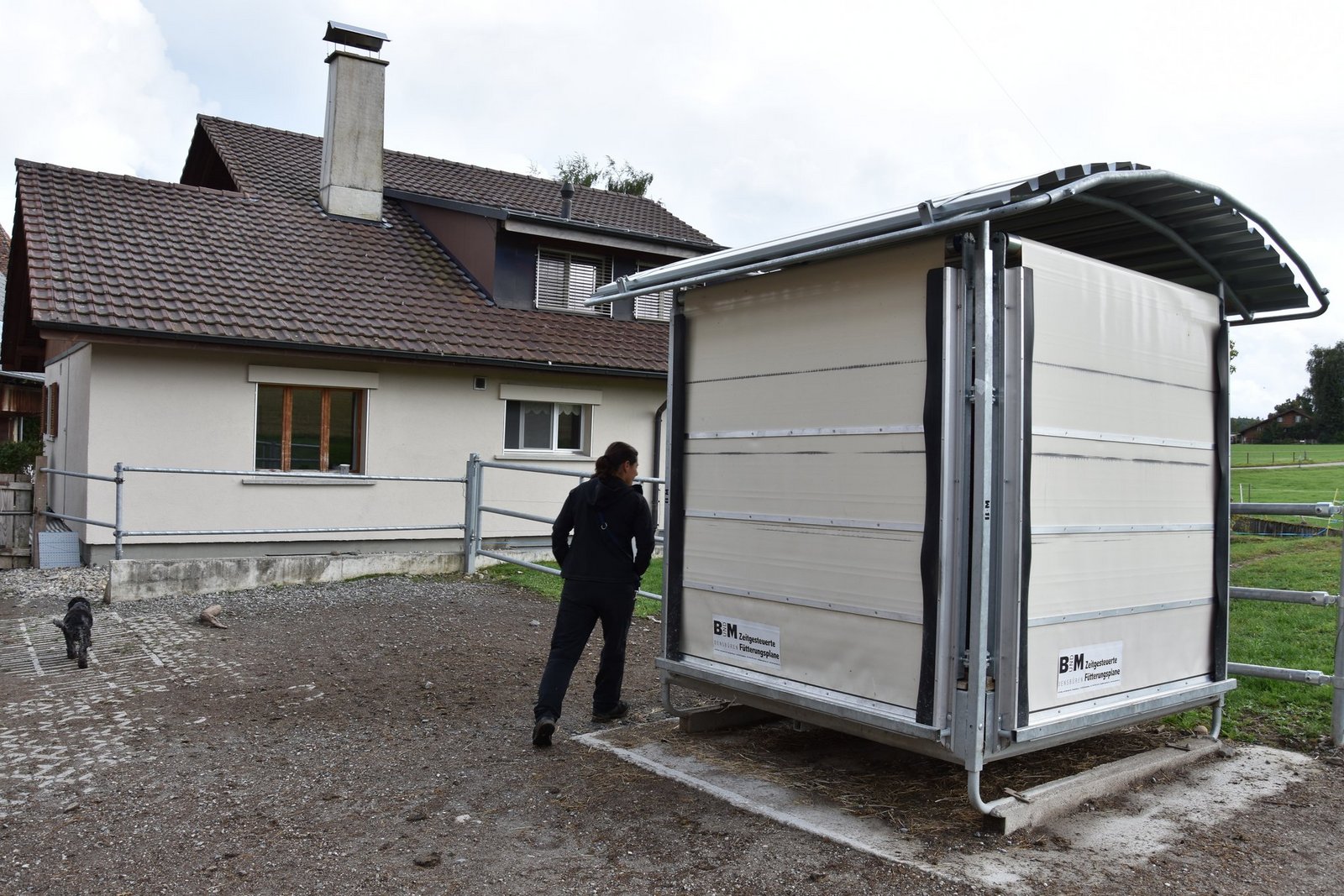 Auch mit den freilaufenden Hühnern teilen sich die Pferde ihr Revier: «Der Betrieb ist eigentlich eine Riesen-WG», sagt Michel schmunzelnd. Gefüttert werden die Pferde siebenmal täglich durch eine zeitgesteuerte Heuraufe. Kraftfutter gibt sie ihren Pferden nur bei Bedarf. Im Stall hat Michel eine halboffene Box eingerichtet, die als Rückzugsort oder als komplett verschliessbare Unterteilung des Unterstandes dient. «Die Pferde schätzen das sehr», beobachtet Astrid Michel. Zwar sei es kein offizieller Aktivstall, aber Anreize, sich regelmässig zu bewegen, seien durchaus da, erklärt die Tierärztin.