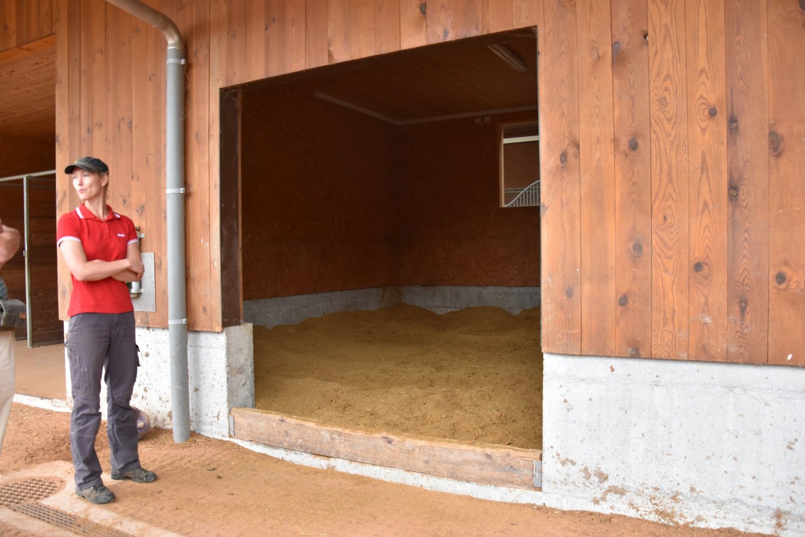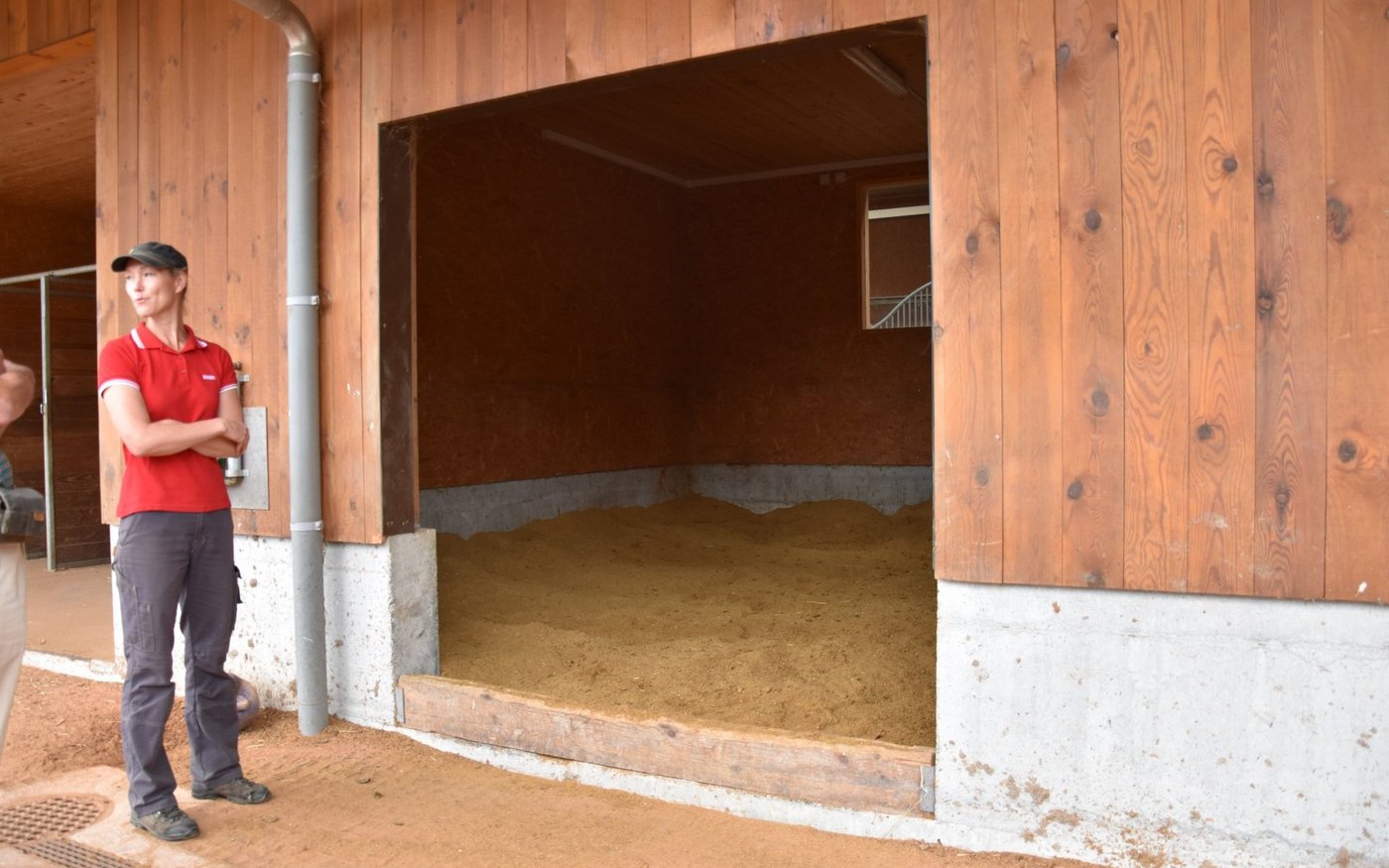 Romy Schaad hält 22 Pferde sowie ein eigenes Pferd. Für eine gute Luftqualität im Liegebereich der Gruppenhaltung verzichtet sie auf Stroh als Einstreu, stattdessen setzt sie auf Dinkelspreu oder Strohpellets. Das bleibt weich, ist gut auszumisten und bindet Geruchsstoffe, das sei vor allem für die Gruppenhaltung praktisch.