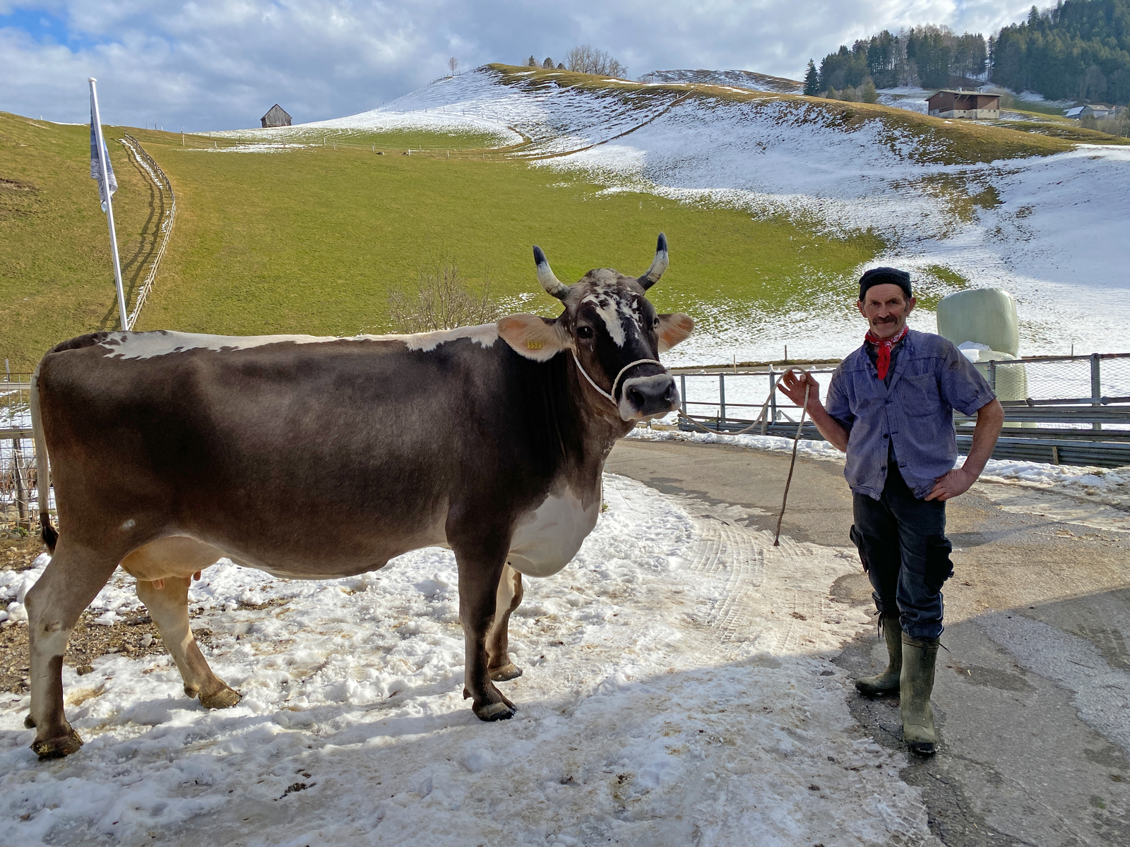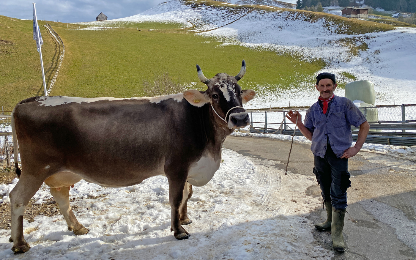 «In diesem Fall gibt eins plus eins eben nicht immer zwei», meint Ueli Hörler. Der Appenzeller steht mit kritischem Blick in seinem Anbindestall vor einer seiner 13 Braunvieh-Kühe. Ihr Fell zeigt den Farbschlag Blüem, doch mit entschieden zu viel Weiss, wie der Landwirt sagt. Aber es seien gerade diese «wüsten» Kühe, aus denen die schönsten Blüem-Kälber hervorgehen. Der Muni sei dabei zwar wichtig, aber kein Garant…