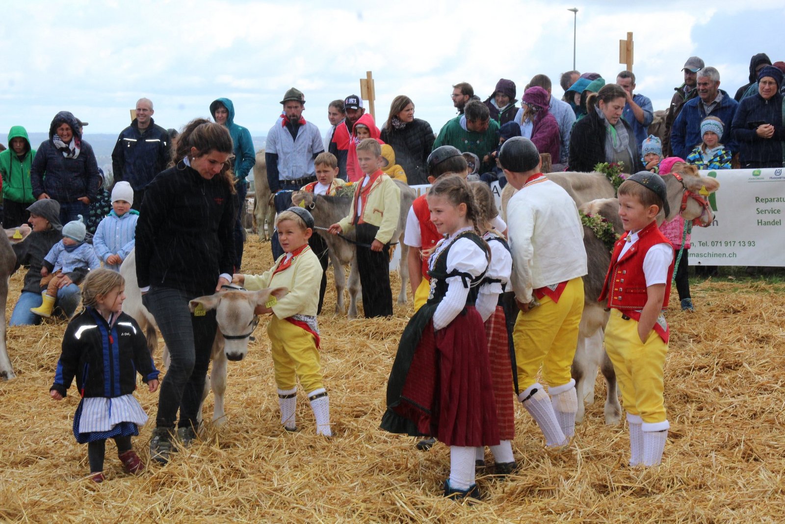 In einigen Bauernbetrieben scheint sich eine eigene Tracht entwickelt zu haben, mit Edelweisshemden und schwarzer Zipfelmütze oder mit Jacken mit der Aufschrift vom Hof. Bei allen war generationenübergreifend Berufsstolz und Traditionsbewusstsein zu spüren. Grosse und kleine Zuschauer, Familien mit Grosseltern und Kinder, alles schien auf den Beinen, denn an die im Thurgau noch einzige Viehschau, da geht man einfach und begleitet die Tiere bis hinauf zum Schauplatz.
