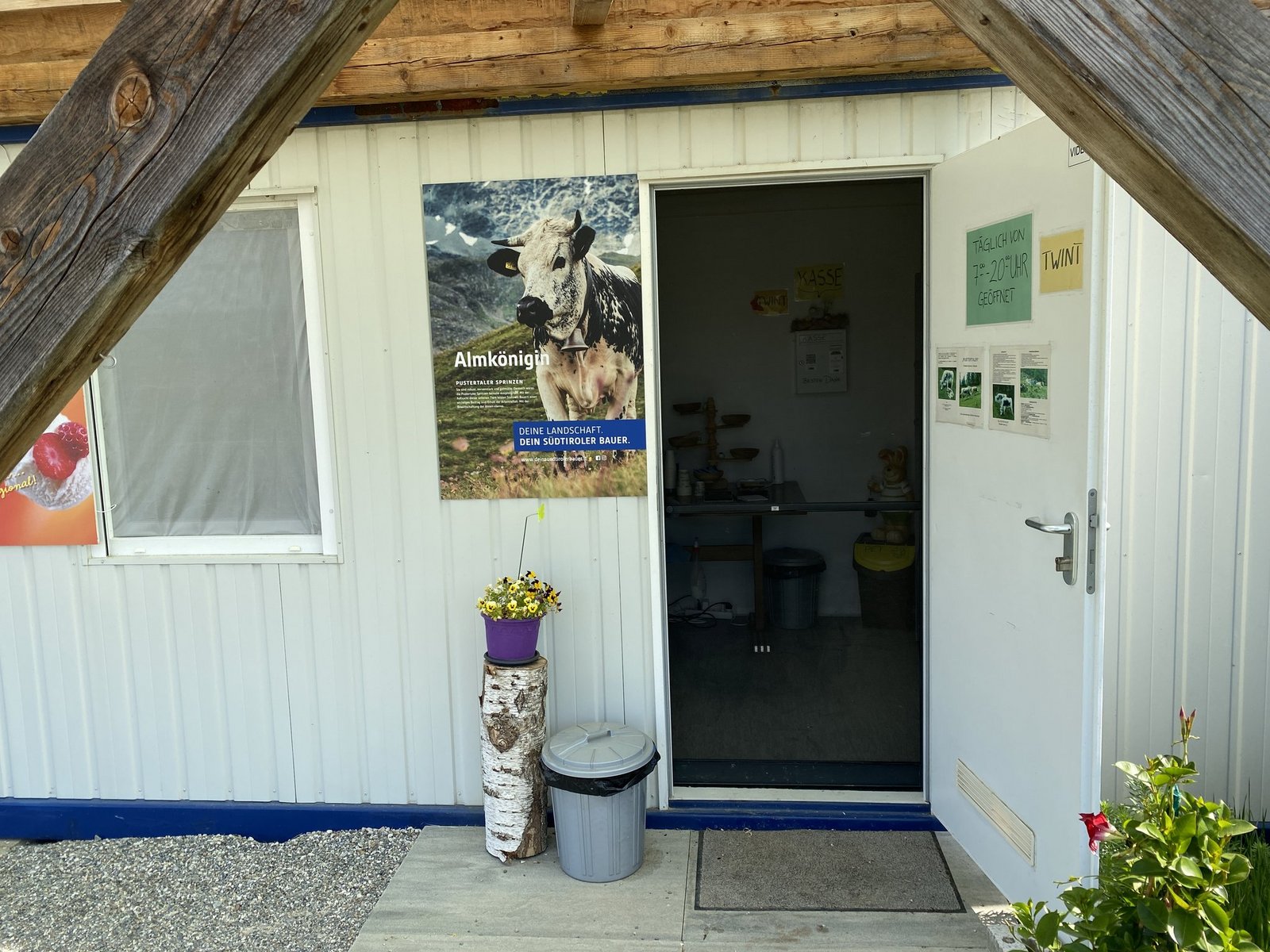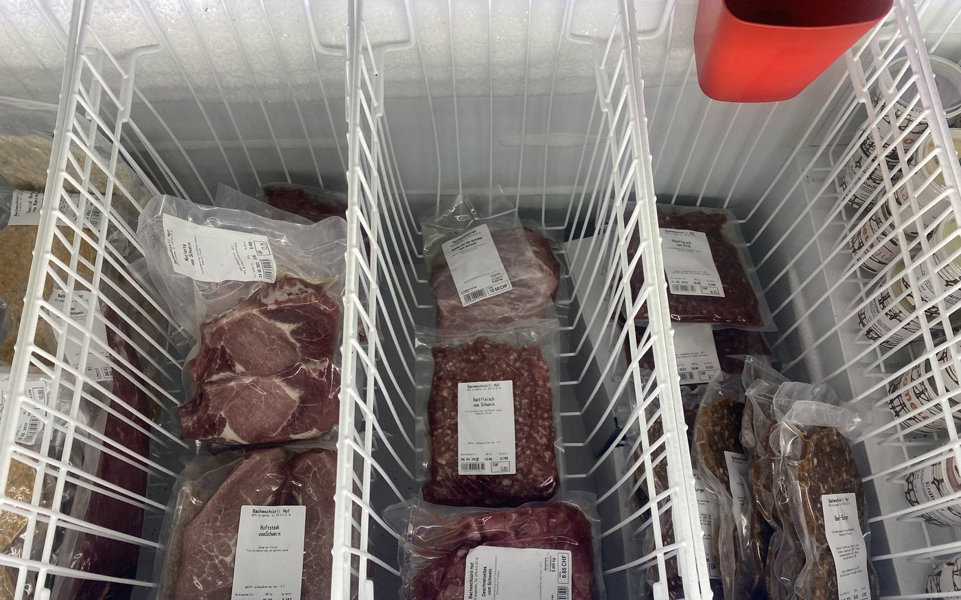Die Thurgauerin führt das einerseits auf das spezielle Fleisch zurück, andererseits aber auch auf die Rezepturen ihrer Würste: 100 Prozent Rind- ohne die Zugabe von Schweinefleisch. Ihr Metzger habe dafür eigens getüftelt, um die richtige Konsistenz zu erreichen. Das Angebot im Hofladen ergänzen Fleisch vom Duroc-Schwein, Ziegen- und Kaninchenfleisch vom Hof, Becherglacé und eine Kaffeemaschine. Je ein Tisch im Verkaufscontainer und unter einem Sonnenschirm davor laden Passanten zum Verweilen ein. So kommt Monica Graf auch mit den Leuten ins Gespräch, erzählt ihnen von den Pustertaler Sprinzen oder führt sie über den Hof – «wir haben nichts zu verbergen», betont sie.