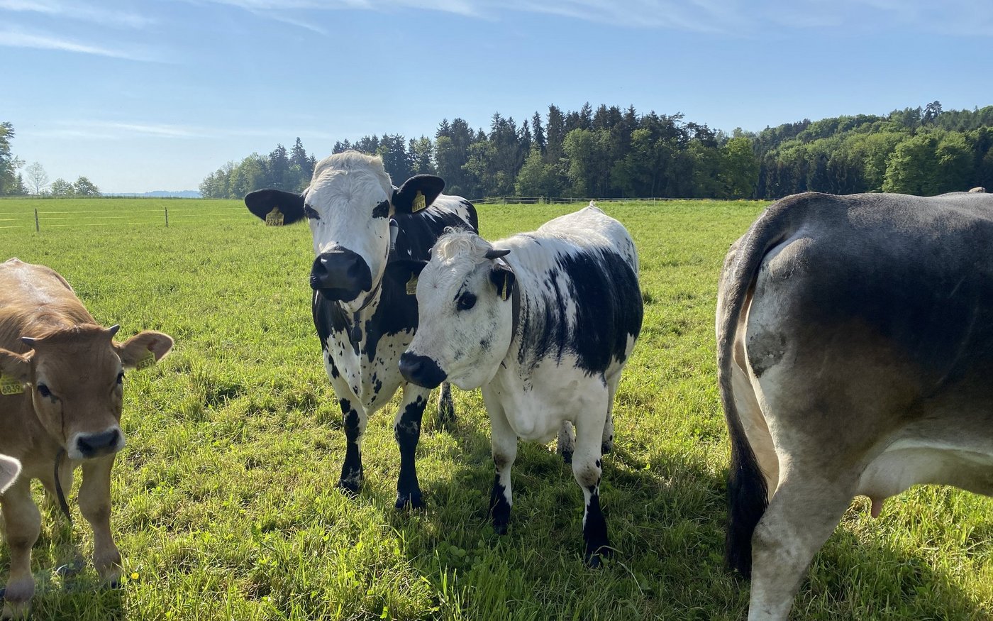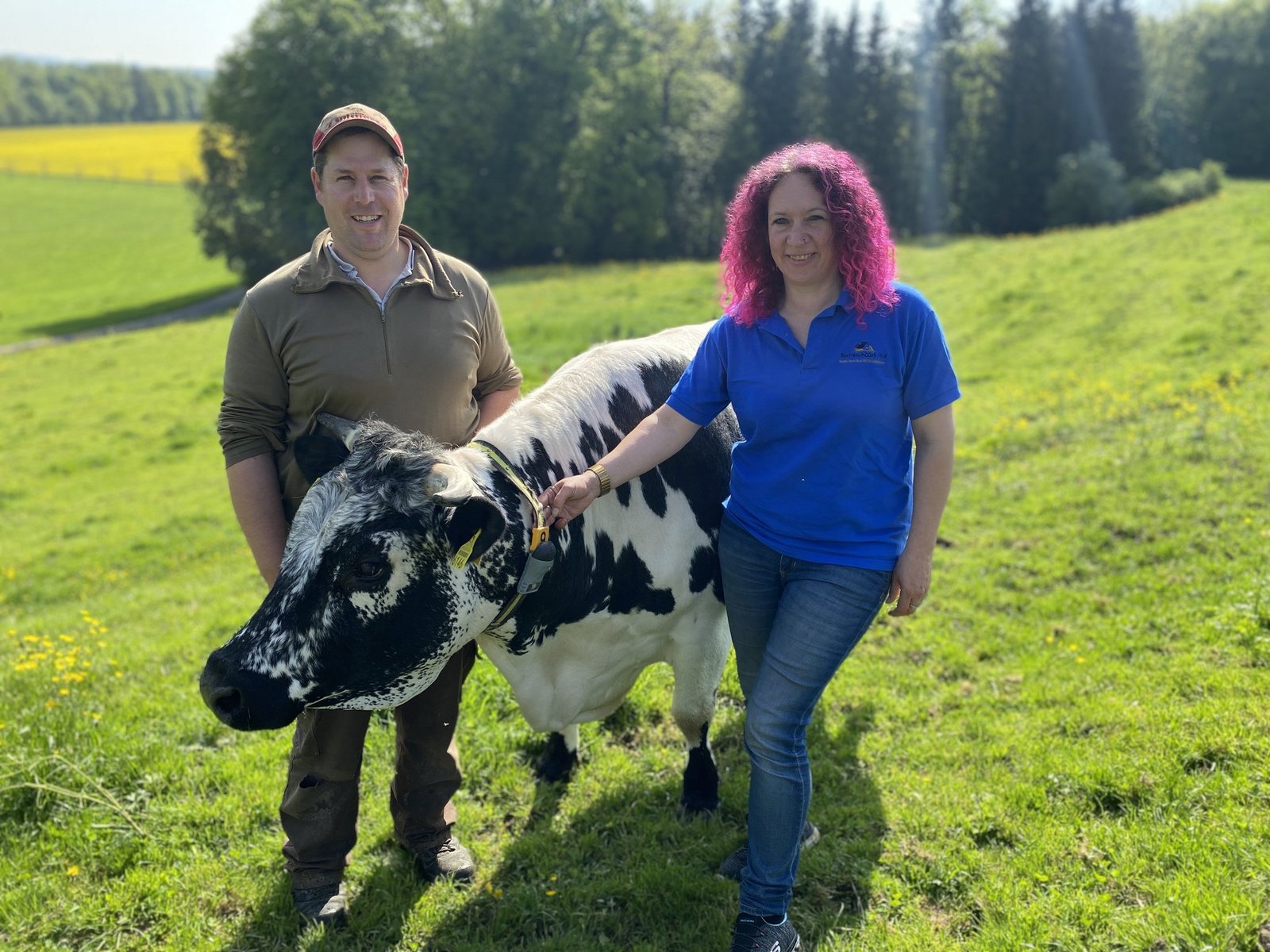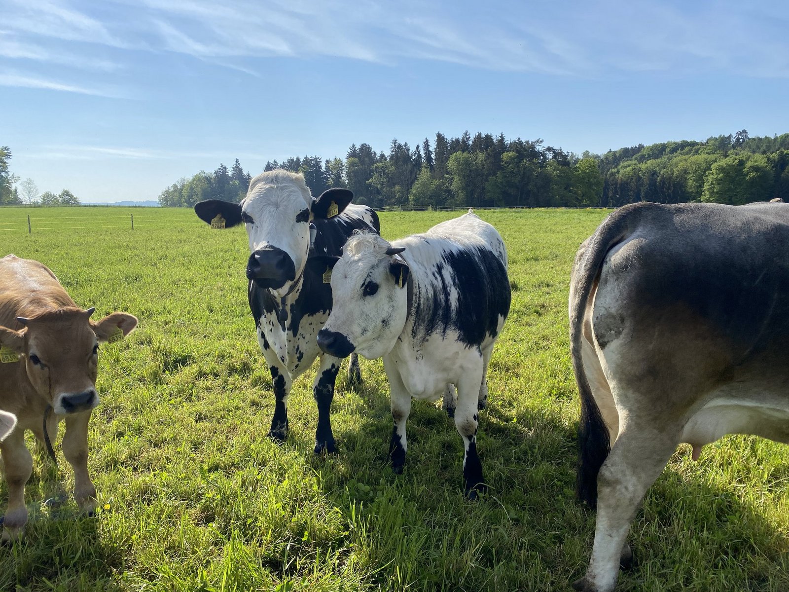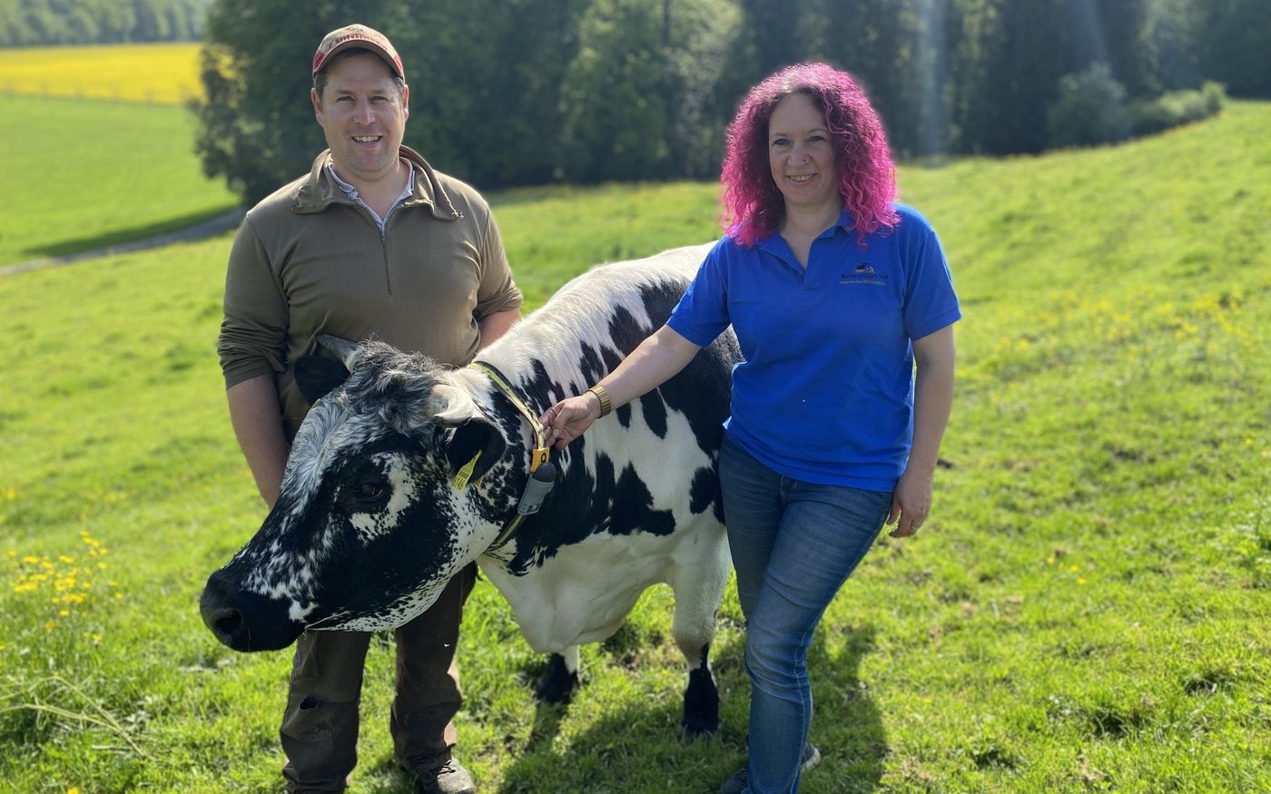 Als Monica Graf ihren heutigen Mann Mark kennengelernt und zum ersten Mal – in Stöckelschuhen nach dem Ausgang – dessen Kühe besucht hat, hielten Grafs in Istighofen im Kanton Thurgau noch Hochlandrinder. Deren Zucht haben sie aber wegen viel Konkurrenz und Preisdruck aufgegeben. «Wir wollten danach etwas Spezielles», erinnert sich die Thurgauerin. Im Blick hatte Graf Murnau-Werdenfelser, auf der Website eines Viehhändlers stiess sie aber auf Pustertaler Sprinzen. 2016 kamen die ersten Tiere dieser Rasse auf das Bacheschüürli, heute sind es drei Kühe und zwei Rinder. Ihre Weide teilen sie sich mit 13 Grauvieh-Mutterkühen und Ammenkälbern.